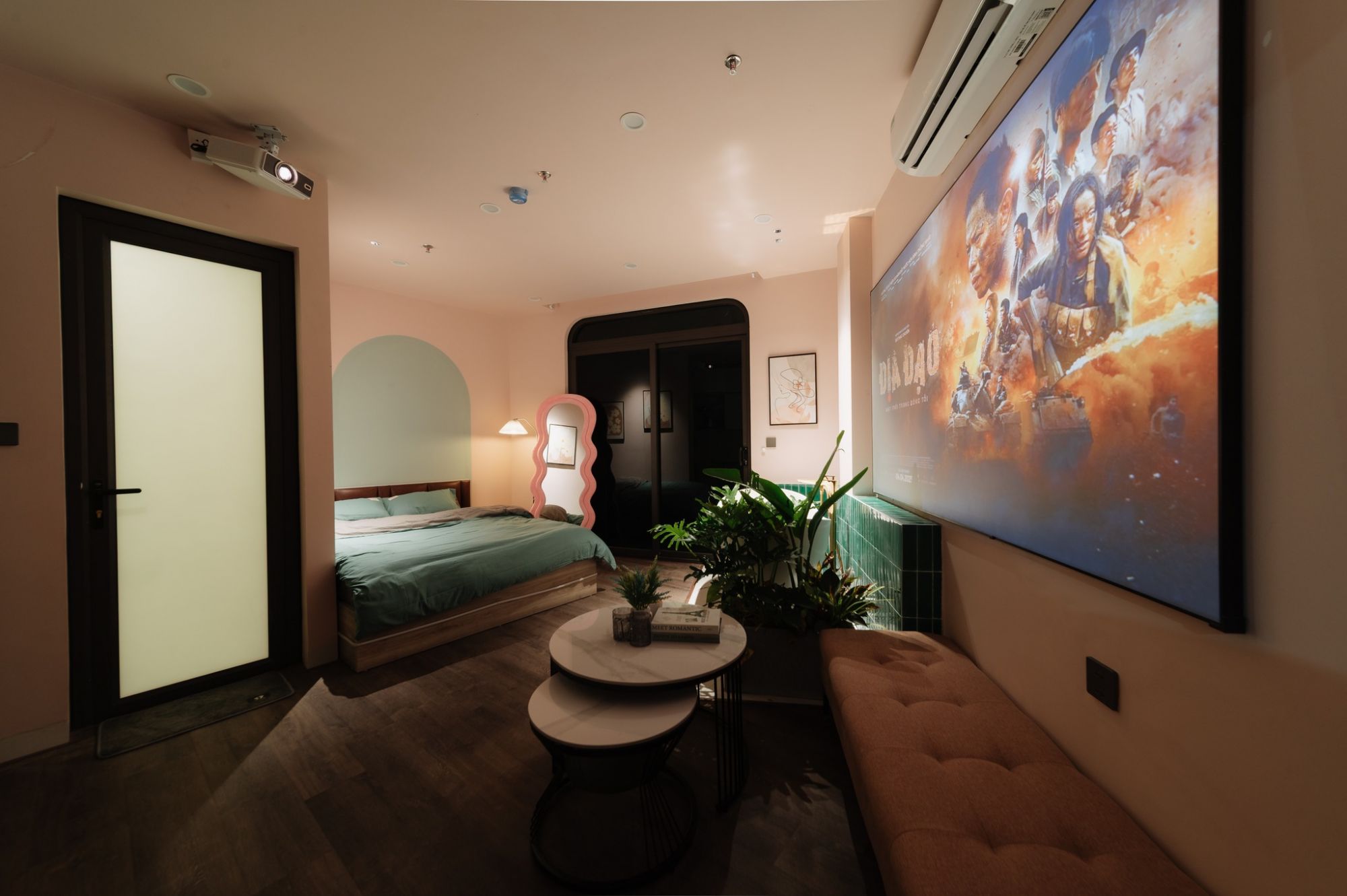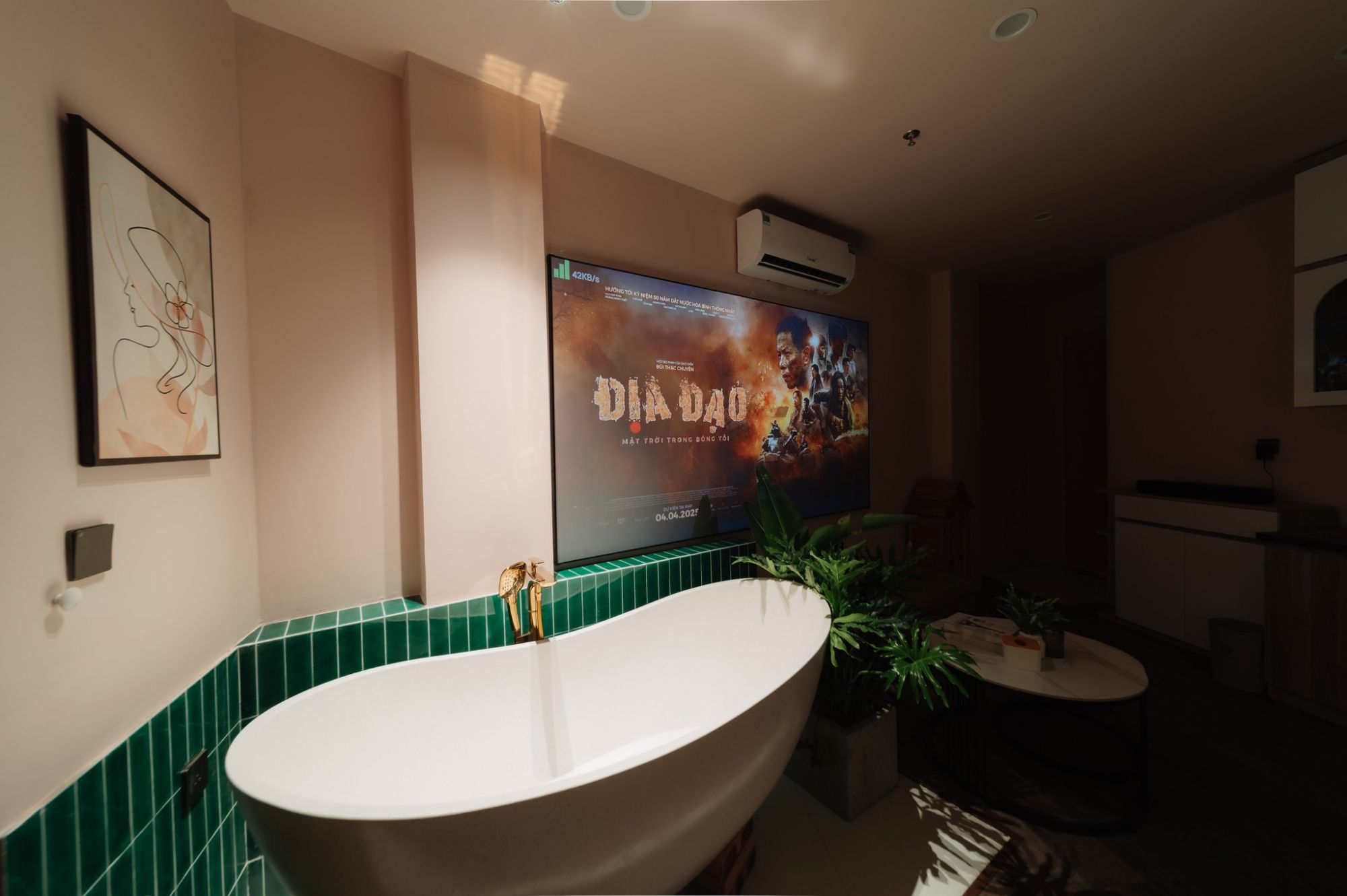 Trải nghiệm giải trí cũng là một phần làm nên sự thú vị của kỳ lưu trú. Phòng được trang bị máy chiếu Netflix, mang lại cảm giác xem phim sống động gần như rạp chiếu thực thụ. Màn hình lớn, âm thanh rõ ràng và kho phim đa dạng tạo nên một buổi tối thư giãn trọn vẹn, đặc biệt phù hợp cho những ngày muốn tận hưởng sự ấm áp ngay trong phòng mà không cần di chuyển ra ngoài.