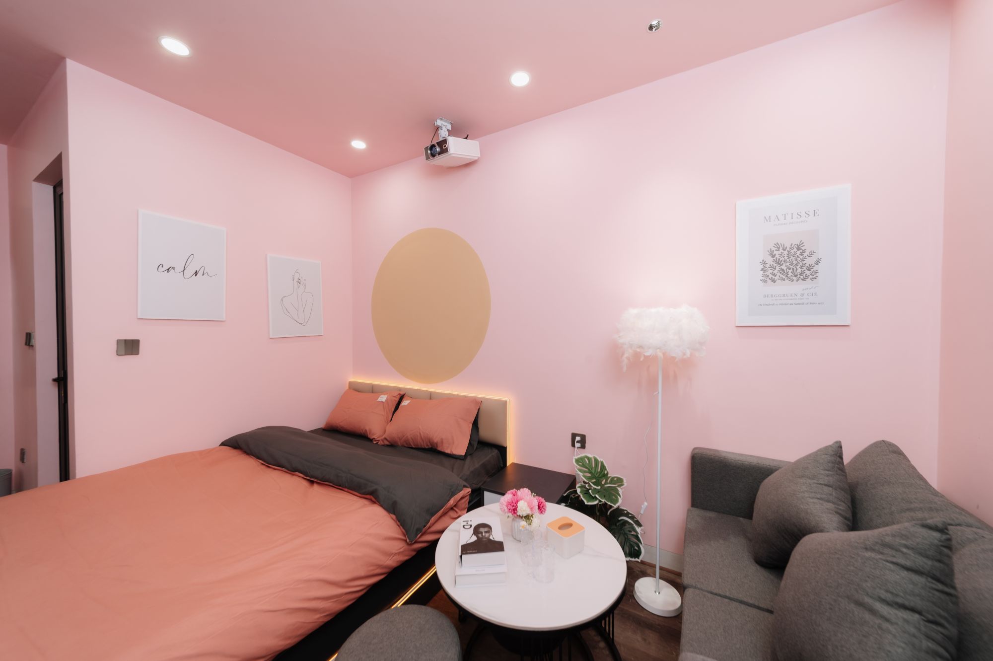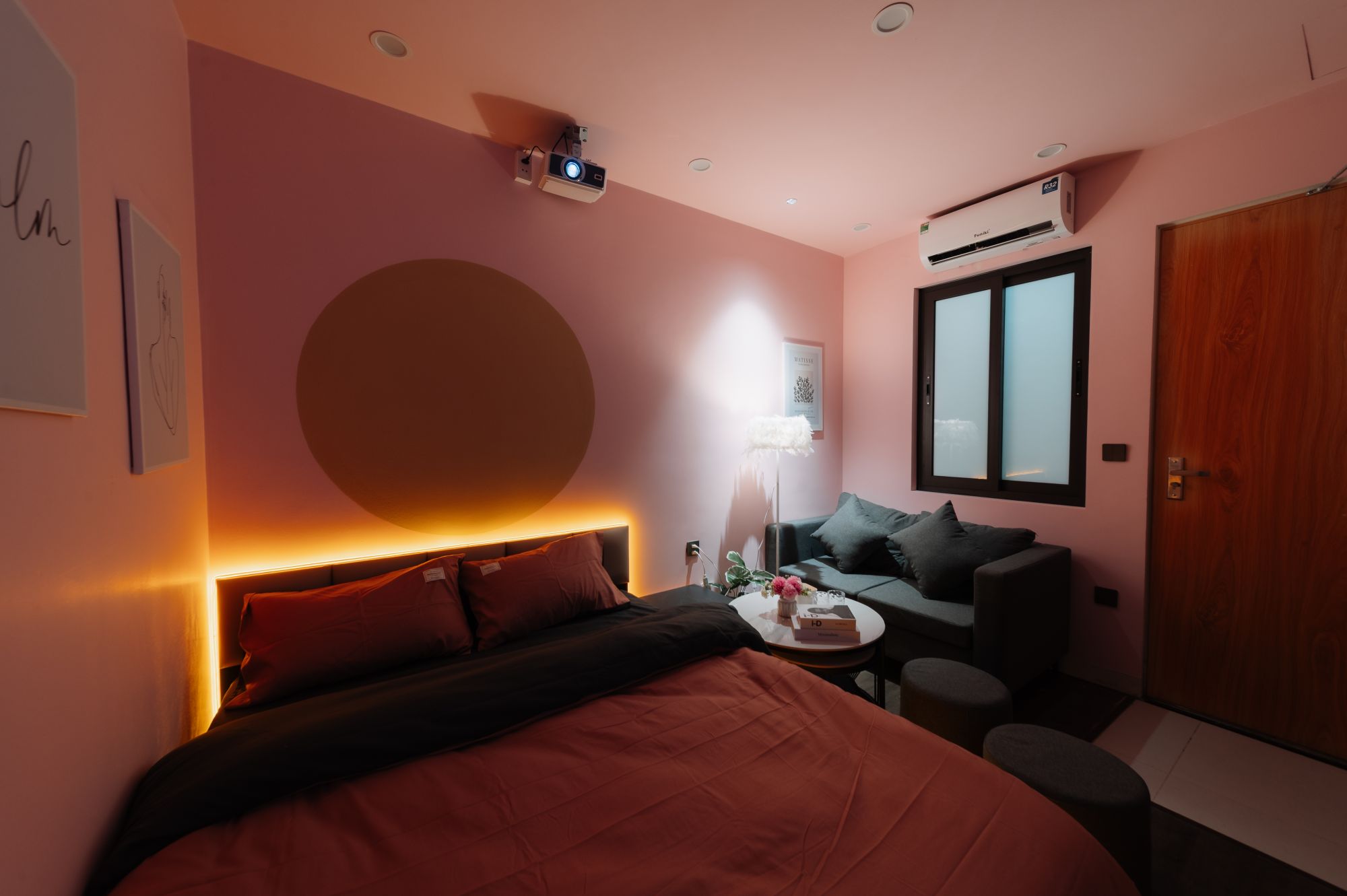 Trải nghiệm giải trí cũng là một phần làm nên sự thú vị của kỳ lưu trú. Phòng được trang bị máy chiếu Netflix, mang lại cảm giác xem phim sống động gần như rạp chiếu thực thụ. Màn hình lớn, âm thanh rõ ràng và kho phim đa dạng tạo nên một buổi tối thư giãn trọn vẹn, đặc biệt phù hợp cho những ngày muốn tận hưởng sự ấm áp ngay trong phòng mà không cần di chuyển ra ngoài.
