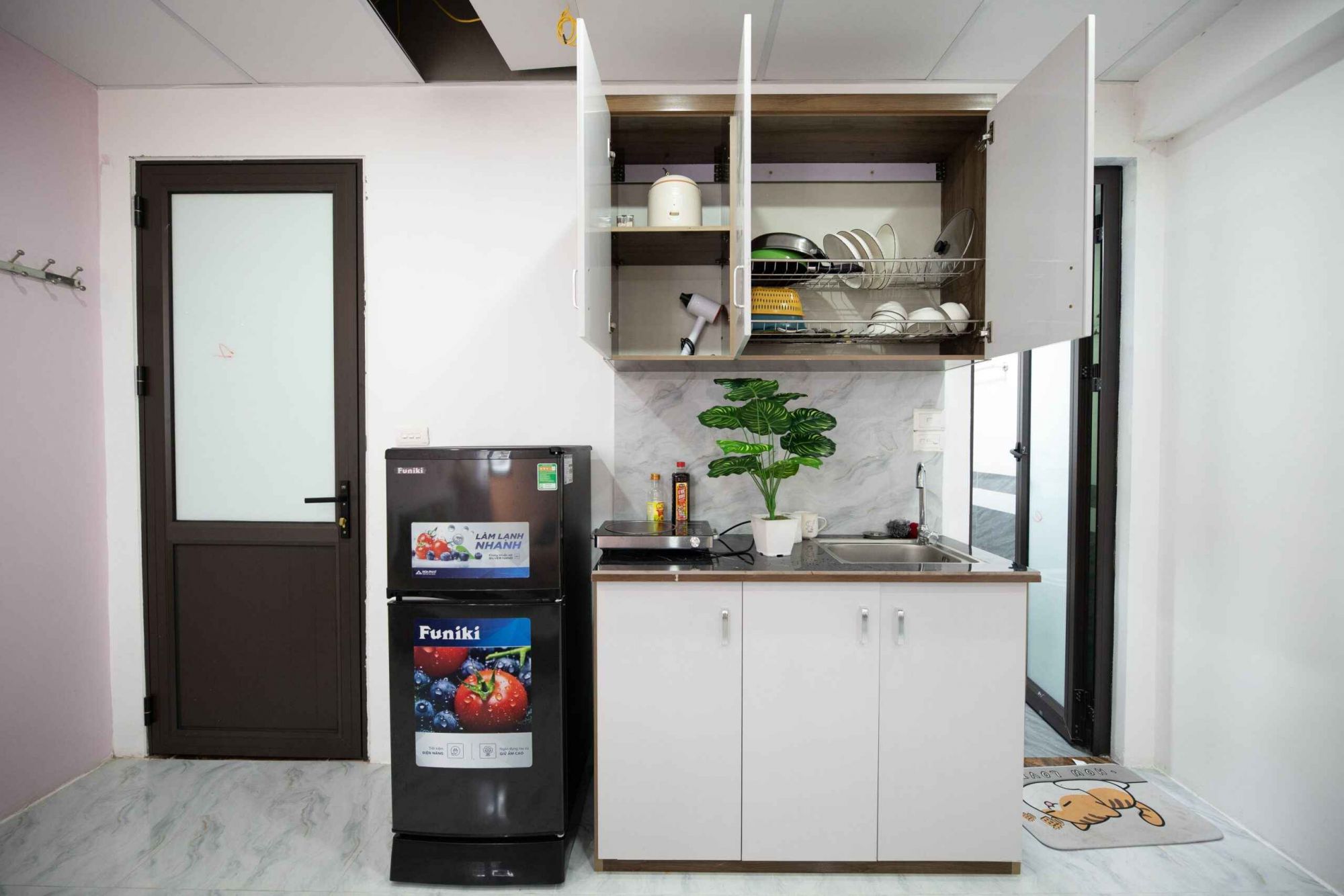 • Không gian hiện đại: Mỗi căn hộ đều được trang bị điều hòa, mang lại cảm giác thoải mái tối đa. Bạn có thể tự do nấu nướng tại bếp đầy đủ tiện nghi và thư giãn với TV màn hình phẳng.