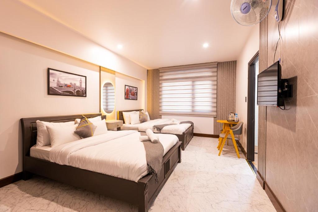 Các phòng tại HT HOUSE Đà Lạt được thiết kế hiện đại, chú trọng sự gọn gàng và thoải mái. Trang bị đầy đủ từ TV màn hình phẳng, bàn trang điểm, gương toàn thân đến toilet riêng trong phòng, tất cả đều giúp du khách có những giây phút thư giãn trọn vẹn. Không gian luôn được giữ sạch sẽ, thoáng mát và phù hợp cho cả những chuyến đi ngắn ngày lẫn dài ngày.