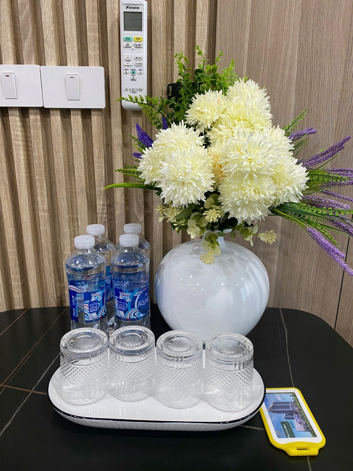 Căn hộ có 2 phòng ngủ nằm tách biệt hai bên để đảm bảo sự riêng tư cho các thành viên. Mỗi phòng đều có giường nệm dày êm ái, tủ đựng quần áo, cửa sổ lớn bằng kính giúp đón ánh sáng tự nhiên và ngắm nhìn khung cảnh xung quanh. Một phòng có toilet khép kín, phòng còn lại sử dụng toilet ngoài – vẫn rất thuận tiện cho sinh hoạt hàng ngày. Không gian phòng ngủ tối giản, ấm áp và sạch sẽ, mang lại cảm giác thân thuộc như đang ở nhà.