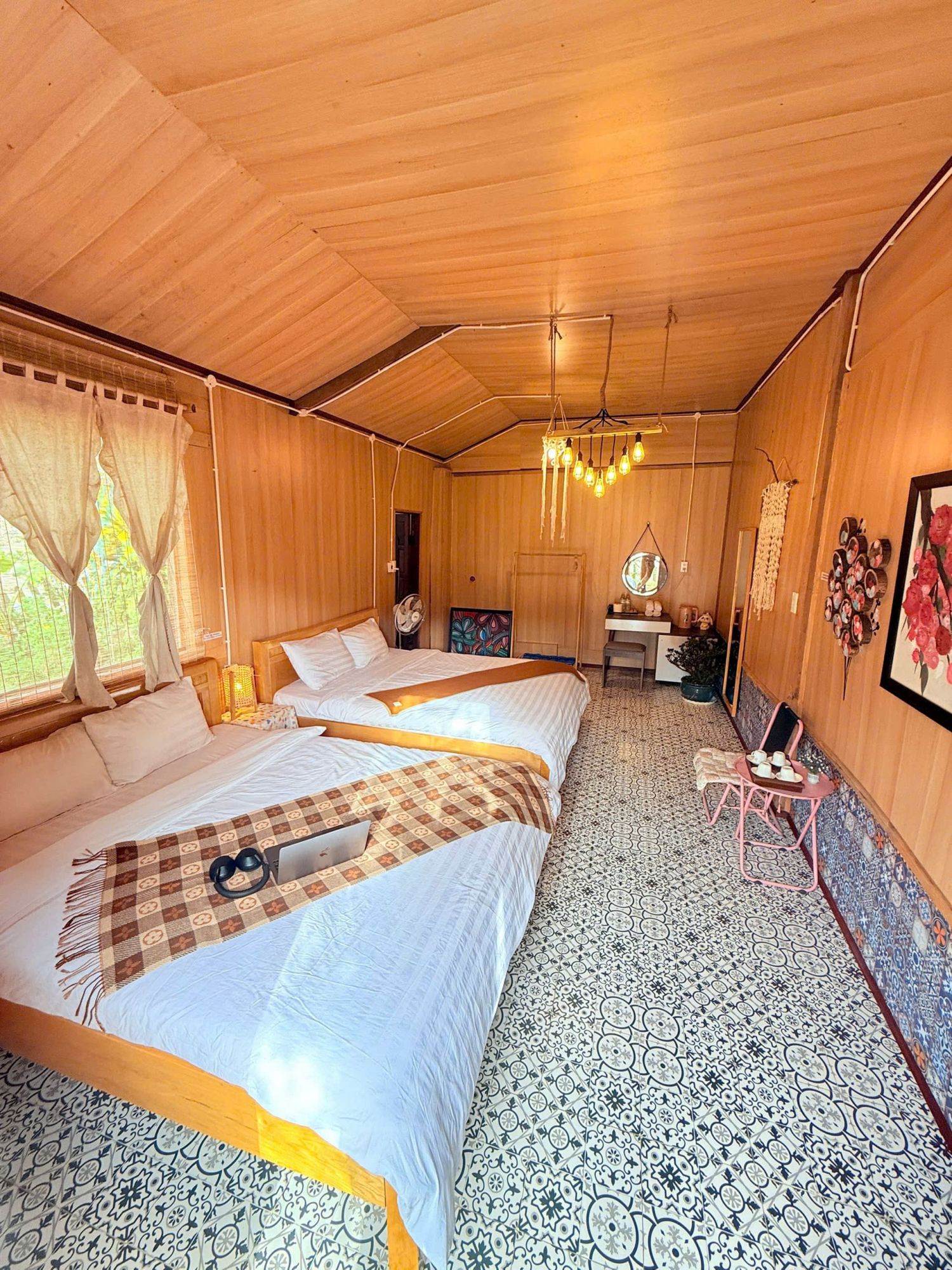 Khu nhà chính là căn nhà gỗ riêng biệt gồm 5 phòng ngủ, trong đó có 3 phòng đôi và 2 phòng đơn, tất cả đều có nhà vệ sinh riêng trong phòng.
