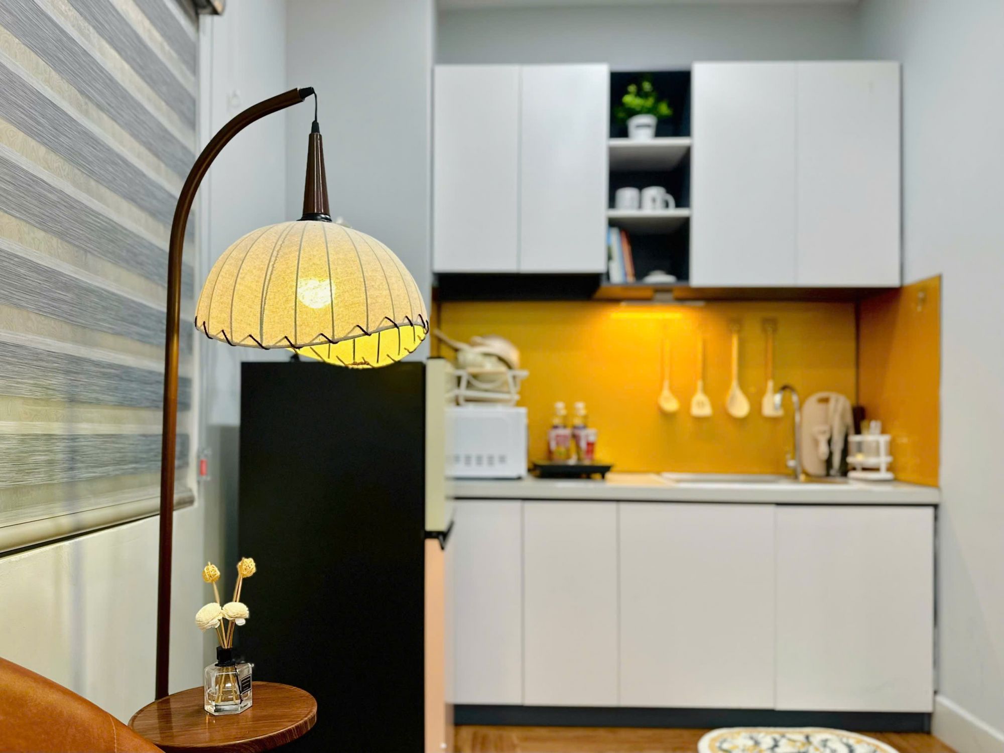 Trang bị đầy đủ nội thất: giường ngủ, bàn ghế, khu vực bếp riêng thuận tiện cho khách lưu trú dài ngày