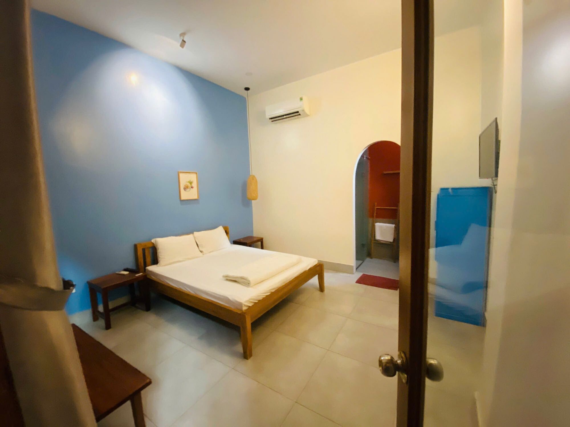 Khu homestay của K House-K2 Homestay & Coffee mang phong cách tối giản, tập trung vào sự gọn gàng và cảm giác sạch sẽ. Phòng không quá rộng nhưng bố trí hợp lý với giường êm, ga gối sáng màu, vài điểm nhấn từ gỗ và tranh treo tường. Cửa sổ được tận dụng tối đa ánh sáng, giúp căn phòng không bị nặng nề dù sử dụng tông màu trung tính. Vào ban đêm, khi tiếng xe ngoài phố dần thưa, không gian trong phòng bỗng trở nên tĩnh lặng, chỉ còn tiếng điều hoà, tiếng nhạc khe khẽ vọng lên từ quán cà phê phía dưới, đủ để cảm nhận mình vẫn đang ở trong thành phố nhưng đã tách ra khỏi sự ồn ào trực tiếp.