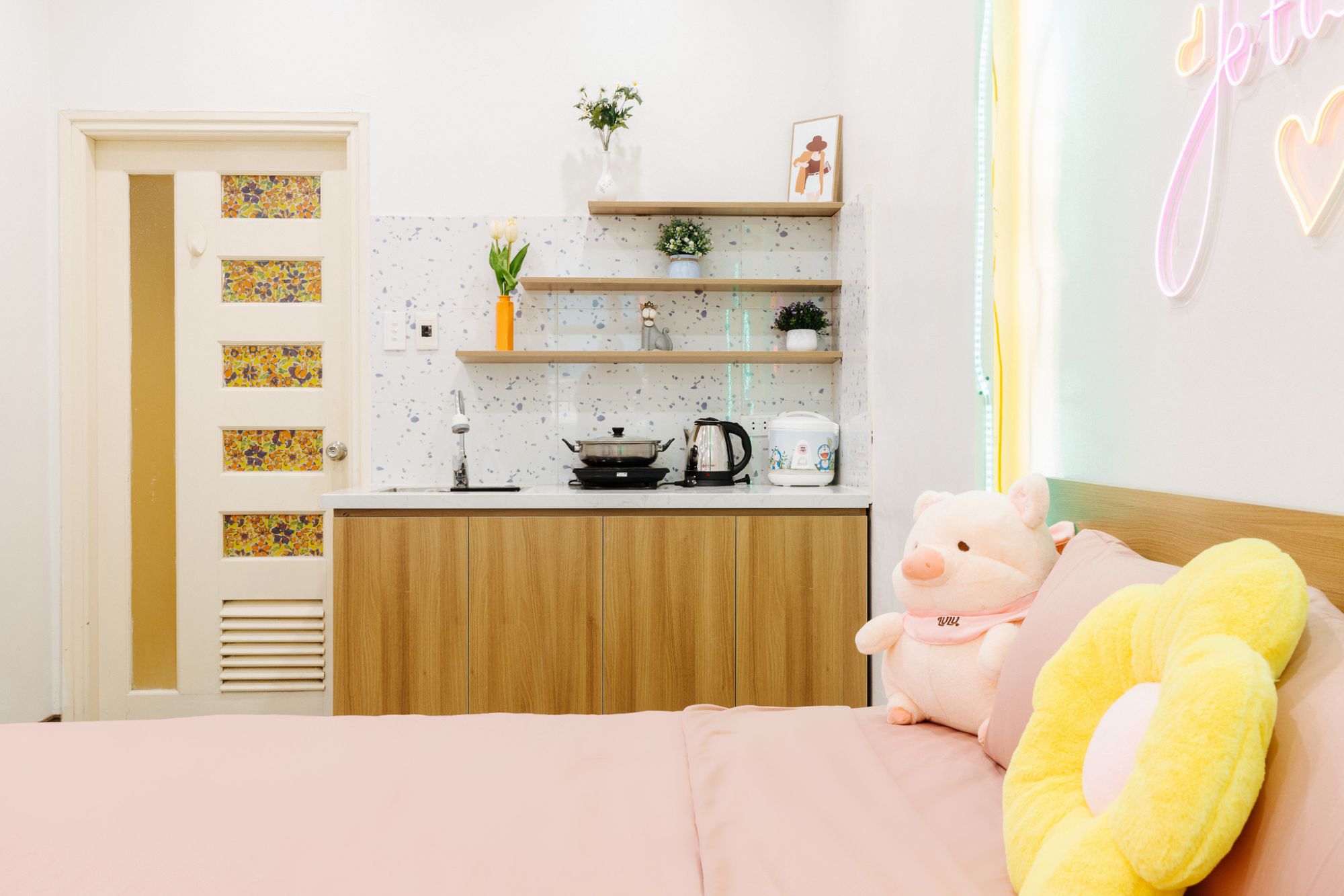 Căn hộ được thiết kế theo phong cách ấm cúng – hiện đại – tối giản, mỗi chi tiết đều được chăm chút tỉ mỉ để tạo nên cảm giác thoải mái như ở nhà. Phòng sáng, sạch, đầy đủ tiện nghi: giường êm, điều hòa, TV thông minh, khu bếp nhỏ gọn, nhà tắm rộng rãi và ban công đón gió – rất thích hợp cho cặp đôi, bạn trẻ hoặc khách đi công tác.