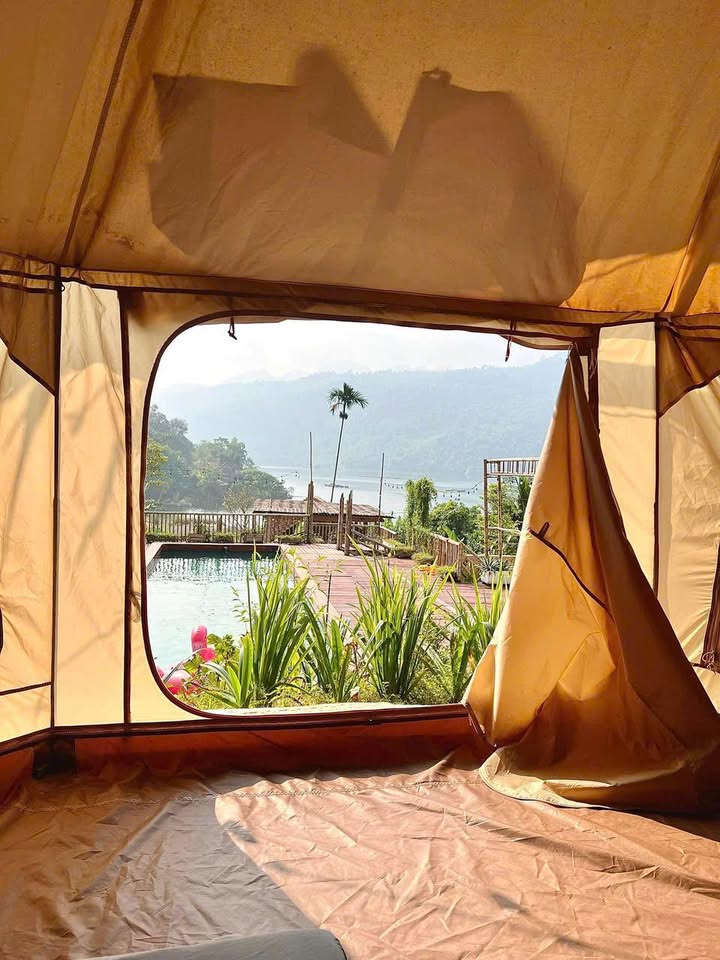 Trải nghiệm glamping gần hồ và bể bơi chung
