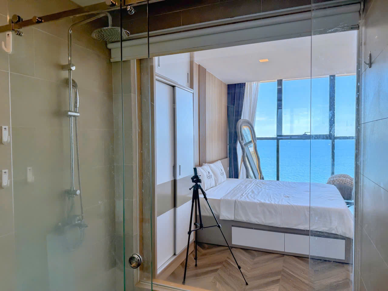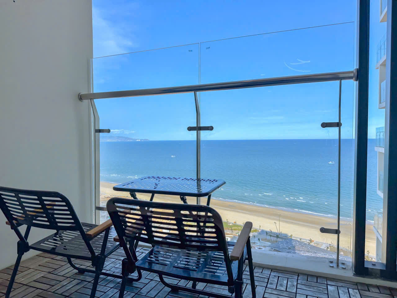 Từ ban công, bạn có thể chiêm ngưỡng khung cảnh biển xanh trải dài, đón ánh hoàng hôn rực rỡ và lắng nghe tiếng sóng vỗ nhẹ nhàng mỗi ngày. Căn hộ rộng rãi, thoáng mát, phù hợp cho các cặp đôi hoặc gia đình nhỏ đang tìm kiếm một không gian nghỉ dưỡng riêng tư, sang trọng và yên bình bên biển.
