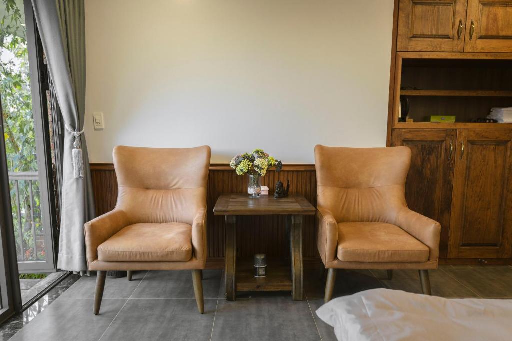 Điểm nổi bật của Ky Vien Home – Bungalow Deluxe nằm ở tầm nhìn hướng ra khuôn viên xanh bên ngoài. Từ không gian bên trong, ánh sáng tự nhiên tràn vào nhẹ nhàng, mở ra cảm giác thoáng đãng và kết nối hài hòa với cảnh quan xung quanh. Buổi sáng mang đến sự trong lành, buổi chiều dịu lại trong sắc xanh yên bình, tạo nên một nhịp nghỉ dưỡng rất riêng, không vội vã.