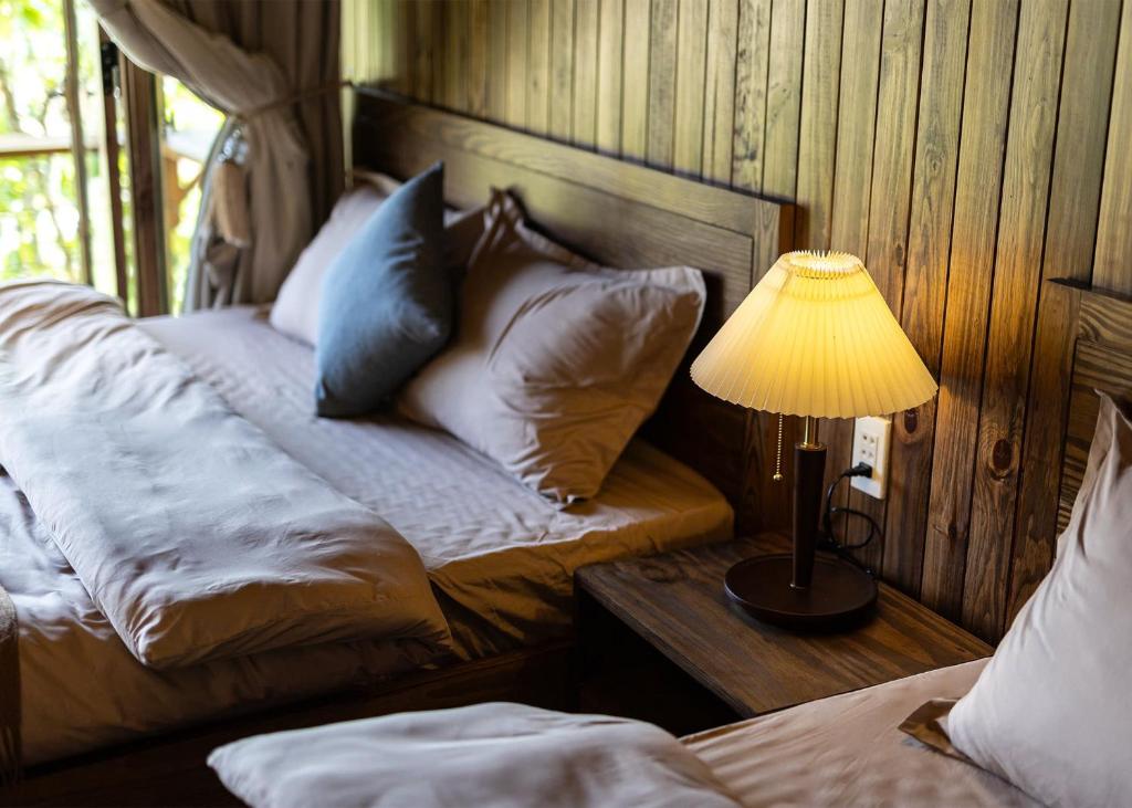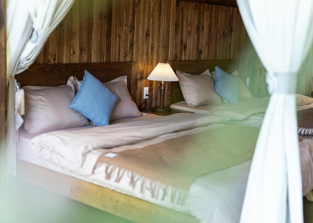 Bungalow Twin được bố trí khoa học với hai giường nghỉ thoải mái, đảm bảo sự tiện nghi cho nhóm bạn thân hoặc gia đình nhỏ. Phong cách thiết kế tối giản nhưng tinh tế, sử dụng gam màu trung tính và chất liệu gần gũi, giúp tổng thể không gian luôn ấm áp và dễ chịu. Mỗi chi tiết đều được cân nhắc để tạo nên sự thoải mái trong sinh hoạt mà vẫn giữ được cảm giác thư giãn tự nhiên.