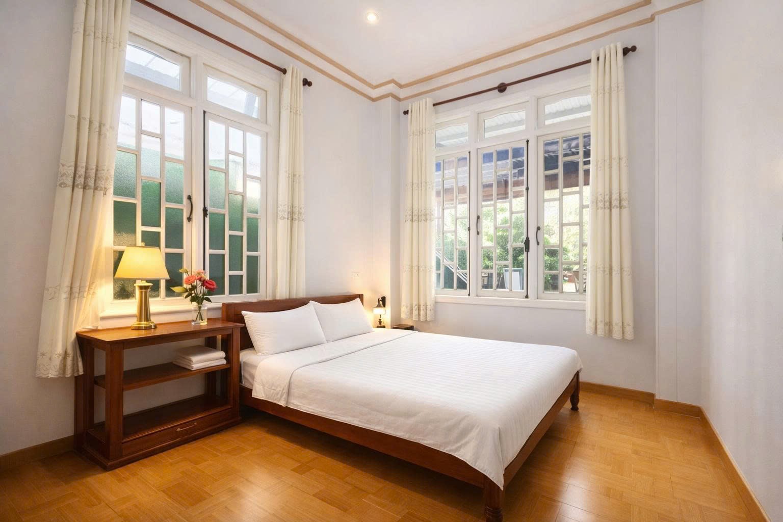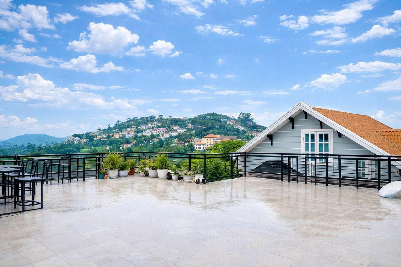 Mang phong cách giản dị, gần gũi, Lacami Home tạo nên một vibe nhẹ nhàng và thư thái với điểm nhấn là sân thượng có view hướng núi thoáng đãng, mang lại cảm giác dễ chịu mỗi ngày. Không gian gồm 7 phòng ngủ được thiết kế đơn giản nhưng ấm cúng, phù hợp cho nhóm tối đa 15 khách. Các phòng đều có cửa sổ đón ánh sáng tự nhiên, kết hợp cùng khu bếp đầy đủ tiện nghi giúp việc sinh hoạt trở nên thuận tiện. Bên cạnh đó, sân rộng có thể đậu xe và khu BBQ ngoài trời là lựa chọn lý tưởng cho những buổi tụ họp, đặc biệt phù hợp với những chuyến đi cùng gia đình, bạn bè và cả thú cưng.