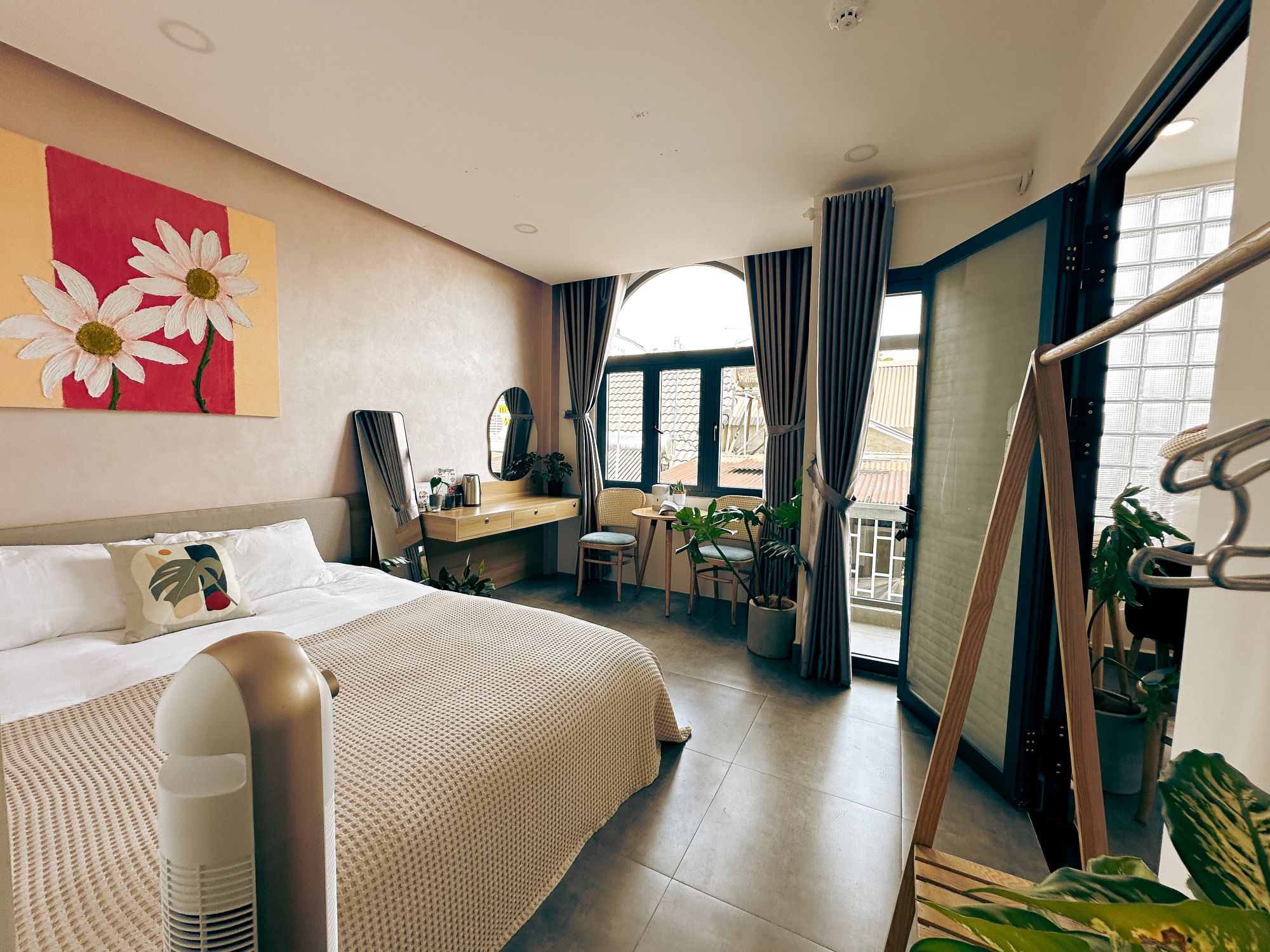 Một điểm dễ nhận thấy tại Lamant de Dalat là sự chú trọng đến trải nghiệm cá nhân trong từng phòng. Góc làm việc nhỏ, bàn trang điểm bo cong hay khu vực ngồi nghỉ được bố trí khéo léo, tạo cảm giác như đang ở trong một căn studio nghệ thuật. Không gian đủ riêng để sinh hoạt theo nhịp của mình, không bị chi phối bởi sự ồn ào bên ngoài.