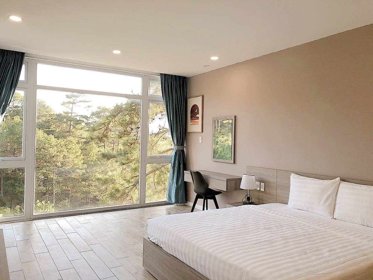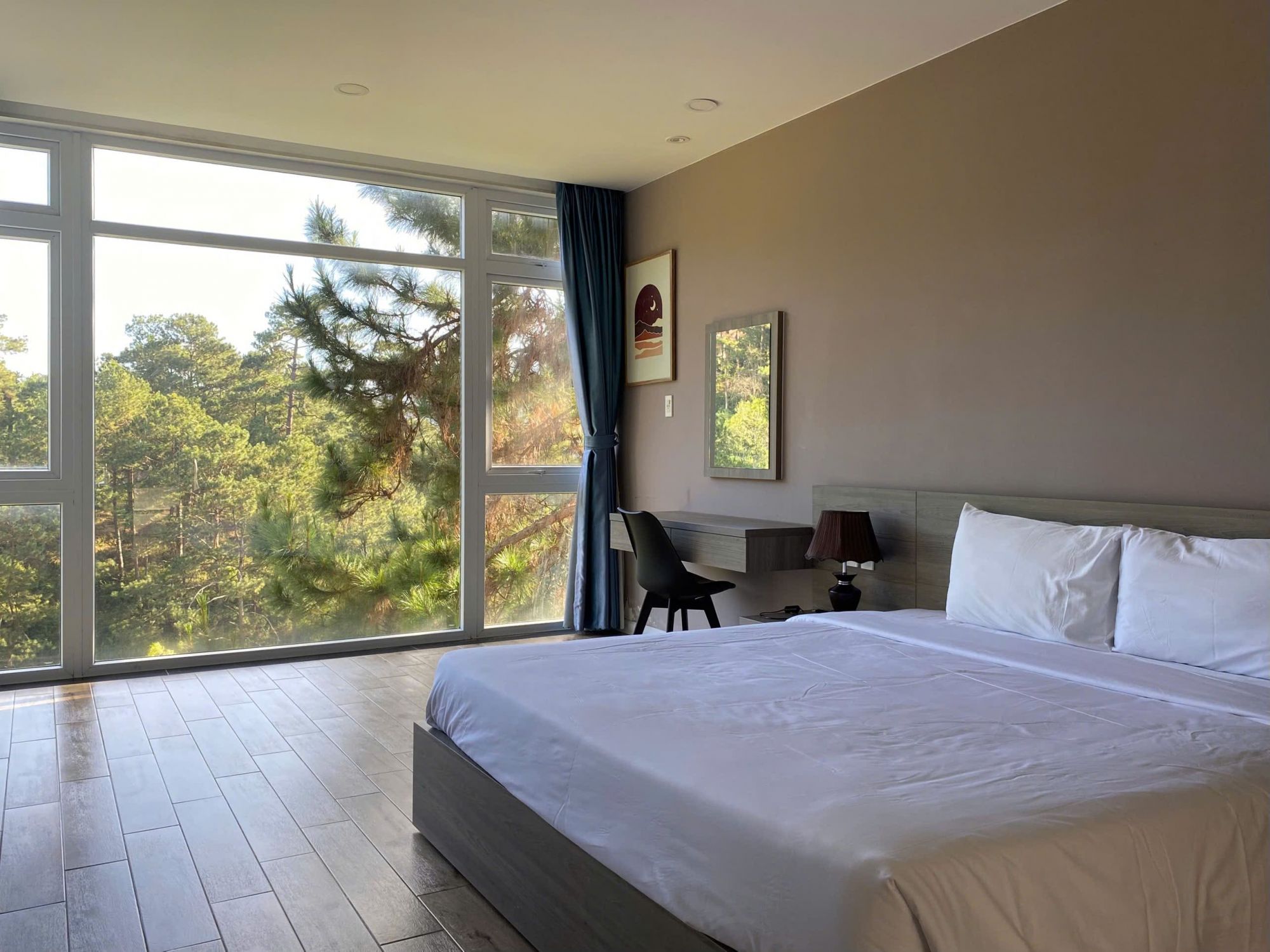 Ẩn mình giữa triền đồi, lặng lẽ soi bóng xuống mặt hồ xanh biếc, từng căn biệt thự là một nét chấm phá mộc mạc giữa đại ngàn thông reo. Kiến trúc tối giản, nhẹ nhàng tôn vinh cảnh quan thiên nhiên, để từng khoảnh khắc tại đây trở thành một lát cắt trọn vẹn của sự an yên.