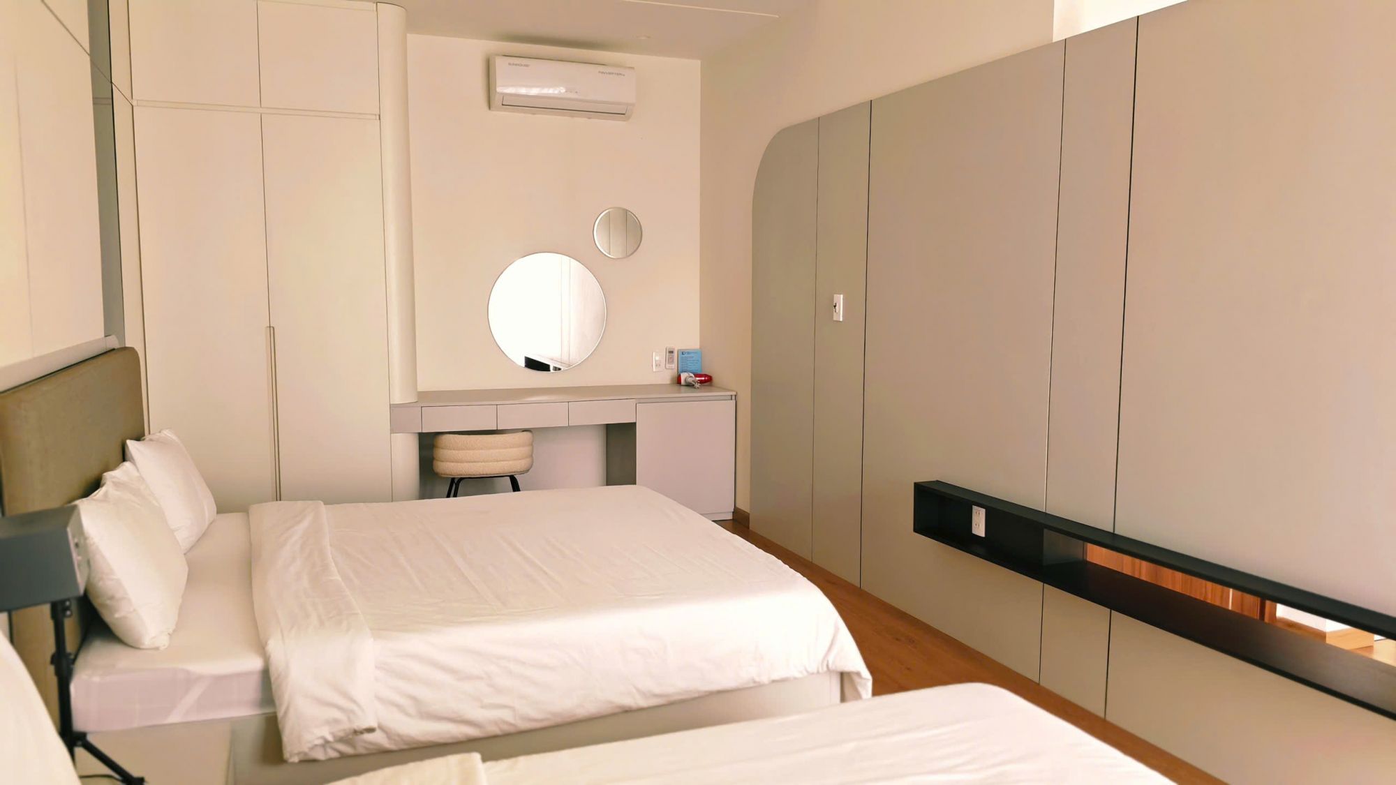 Homestay gồm 4 phòng Queen phù hợp cho 2 người/phòng và 1 phòng Family dành cho nhóm 4 người. Ngoài ra, LD Homestay còn hỗ trợ setup thêm từ 3–4 nệm phụ, linh hoạt cho các đoàn đông người. Tổng sức chứa tối đa lên đến 17–18 người lớn và khoảng 6 trẻ em dưới 8 tuổi, rất phù hợp cho gia đình hoặc nhóm bạn đi du lịch cùng nhau.