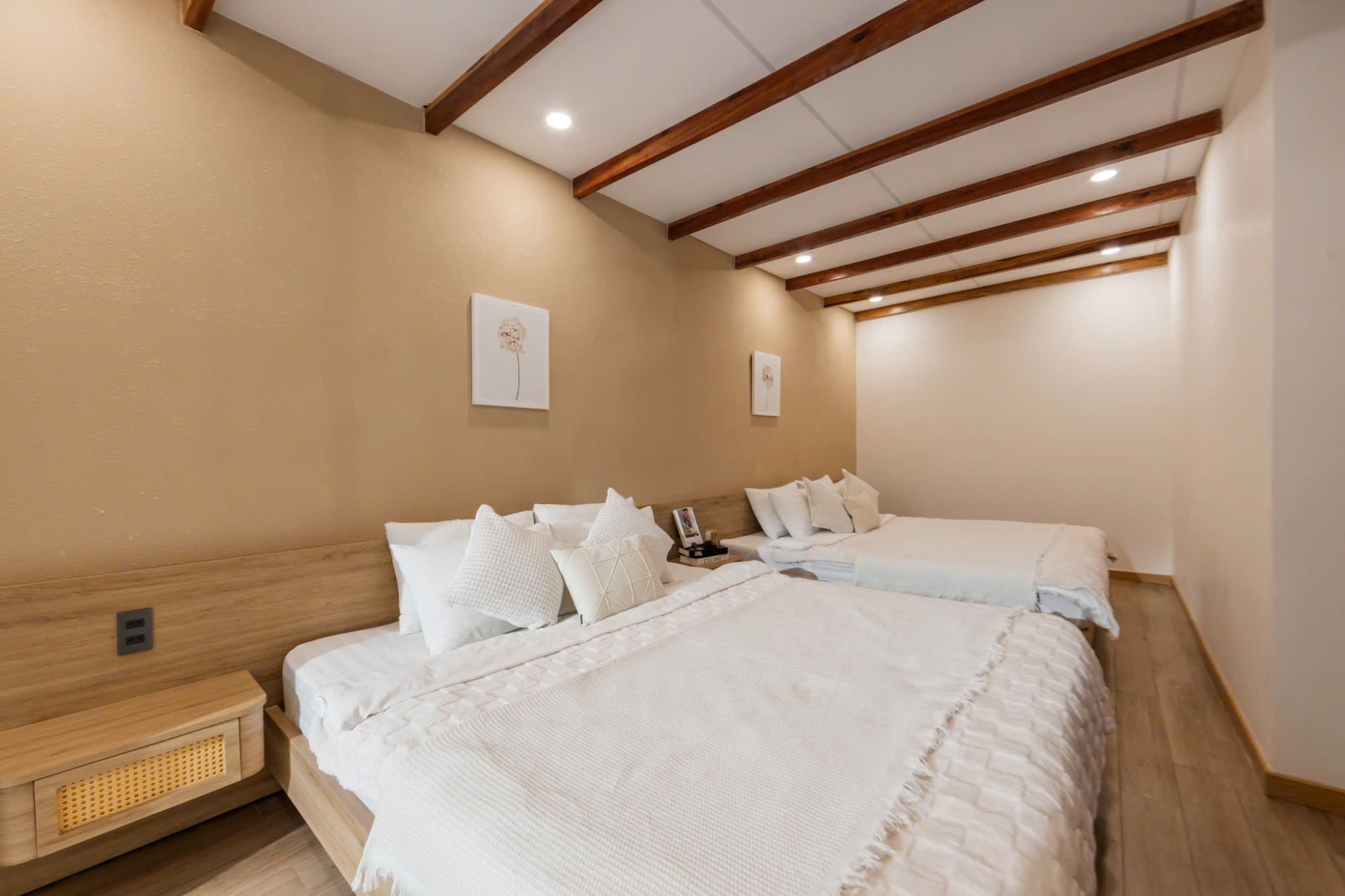 Villa sở hữu tổng cộng 4 phòng ngủ với giường lớn 1m8, được chia thành 3 phòng đơn và 1 phòng đôi. Cách phân chia này giúp linh hoạt cho nhiều nhóm khách khác nhau, từ gia đình đông người đến nhóm bạn đi nghỉ dưỡng. Không gian phòng được thiết kế gọn gàng, thoáng đãng, ưu tiên sự thoải mái để nghỉ ngơi sau một ngày khám phá thành phố.