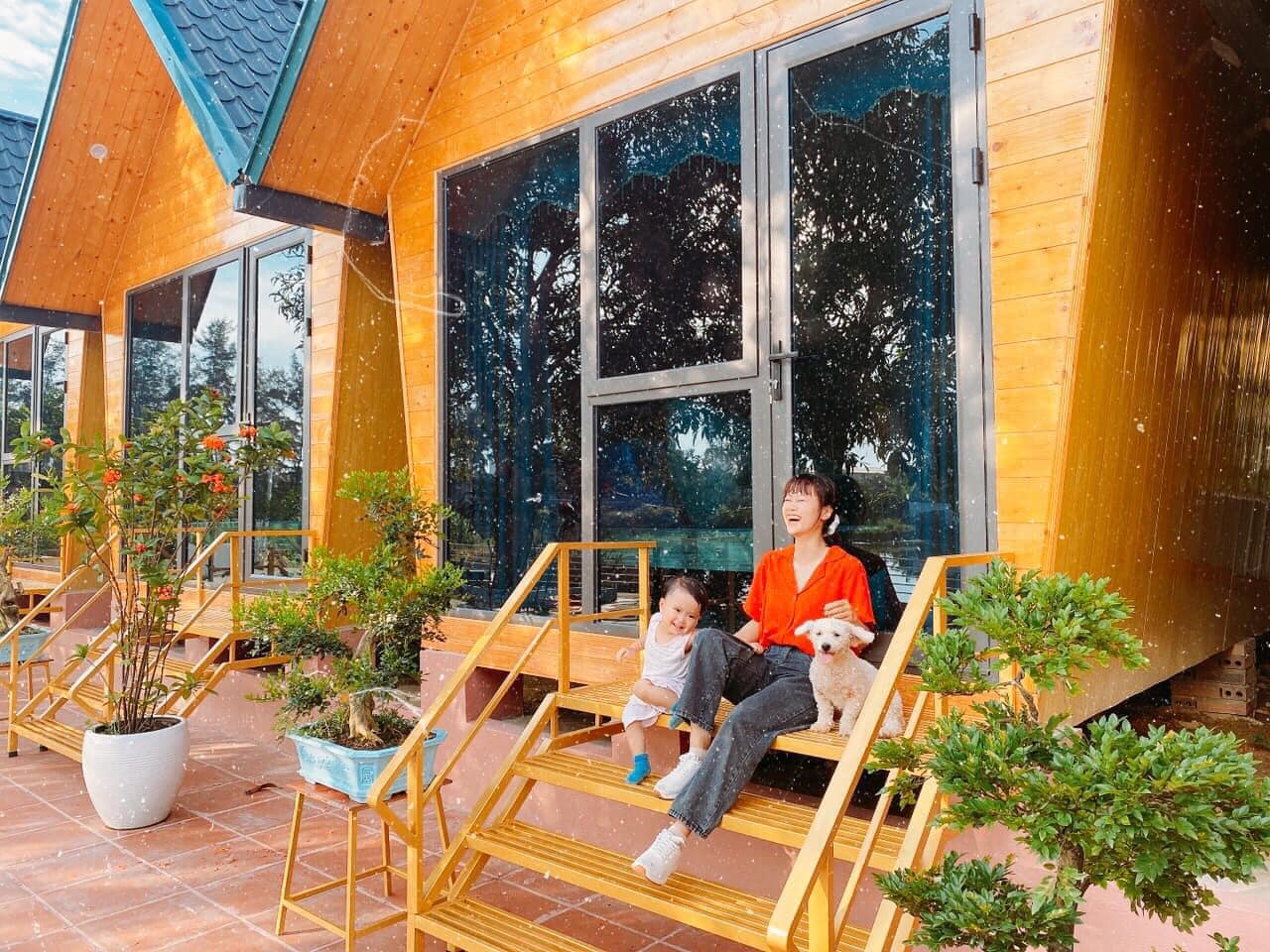 Lương Chi Cô Tô sở hữu 5 căn bungalow gỗ riêng biệt, được thiết kế theo phong cách mái tam giác hiện đại, nổi bật giữa không gian xanh mát. Tông màu gỗ ấm áp kết hợp cùng ánh đèn vàng tạo cảm giác gần gũi, thư giãn ngay từ cái nhìn đầu tiên.