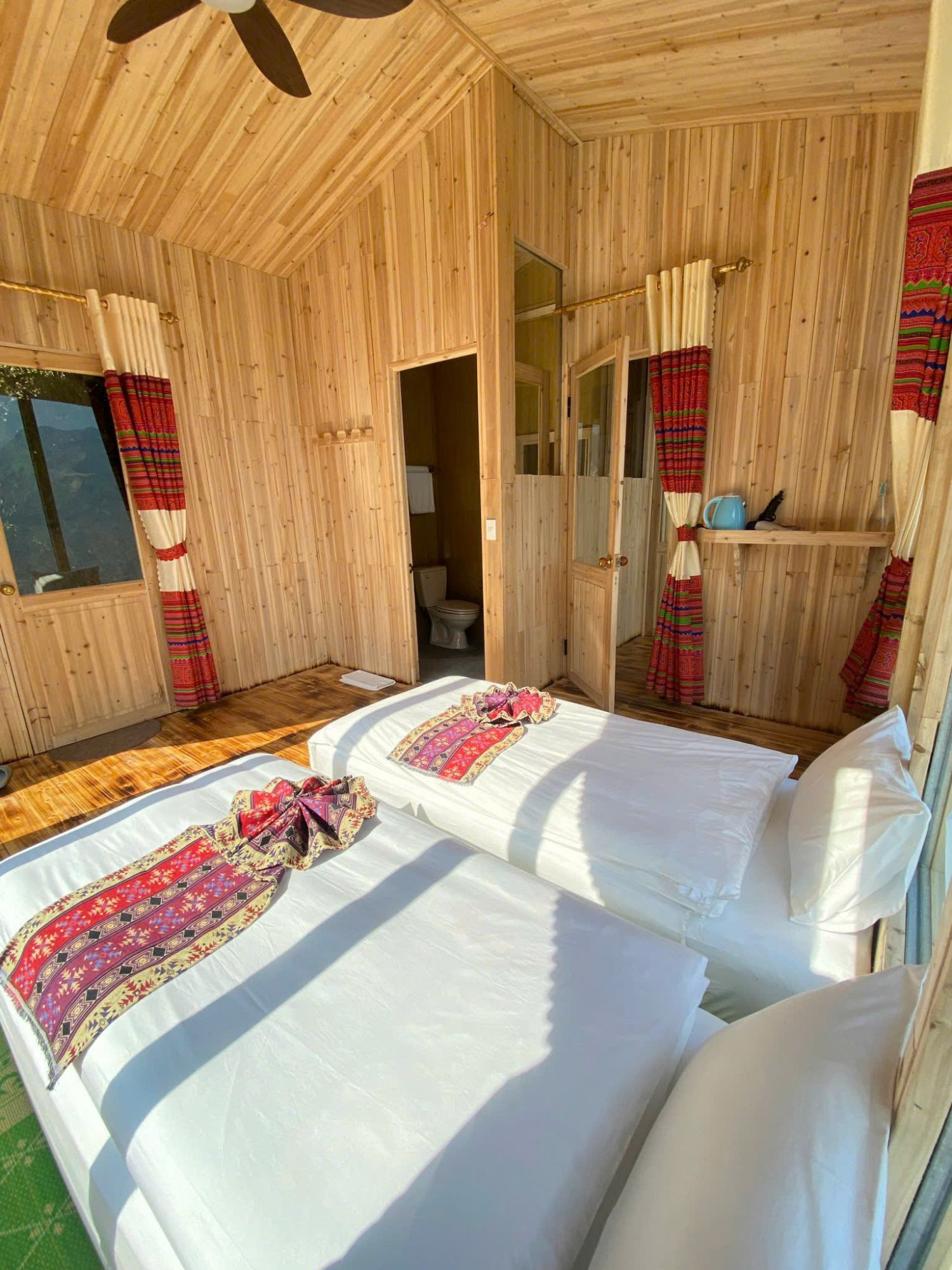 Mỗi căn đều được trang bị phòng tắm riêng với vòi sen, máy sấy tóc cùng dép đi trong phòng, đảm bảo sự tiện nghi và thoải mái cho du khách.