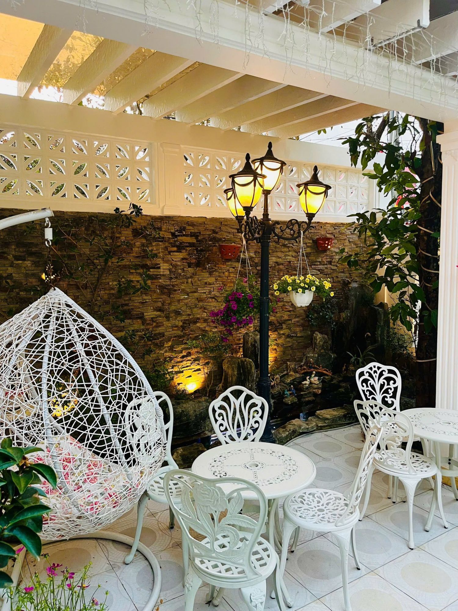 Homestay nổi bật với kiến trúc Pháp nhẹ nhàng nhưng không kém phần sang trọng, tạo nên không gian riêng tư, yên tĩnh và đầy cảm hứng. Mỗi góc nhỏ đều được chăm chút tỉ mỉ, mang lại cảm giác thư giãn và dễ chịu cho khách lưu trú.