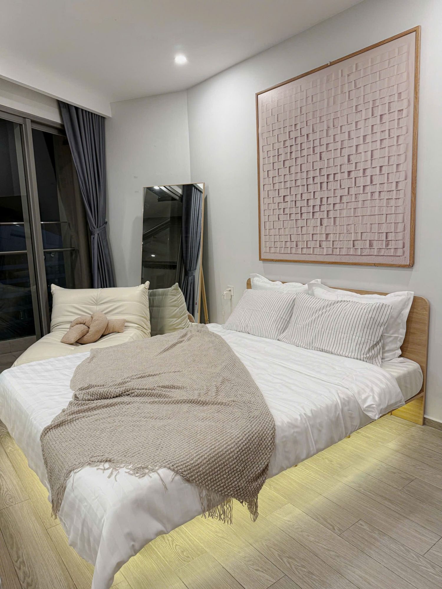 Giường king size 1m8 êm ái, không gian thoáng đãng, dễ chịu.