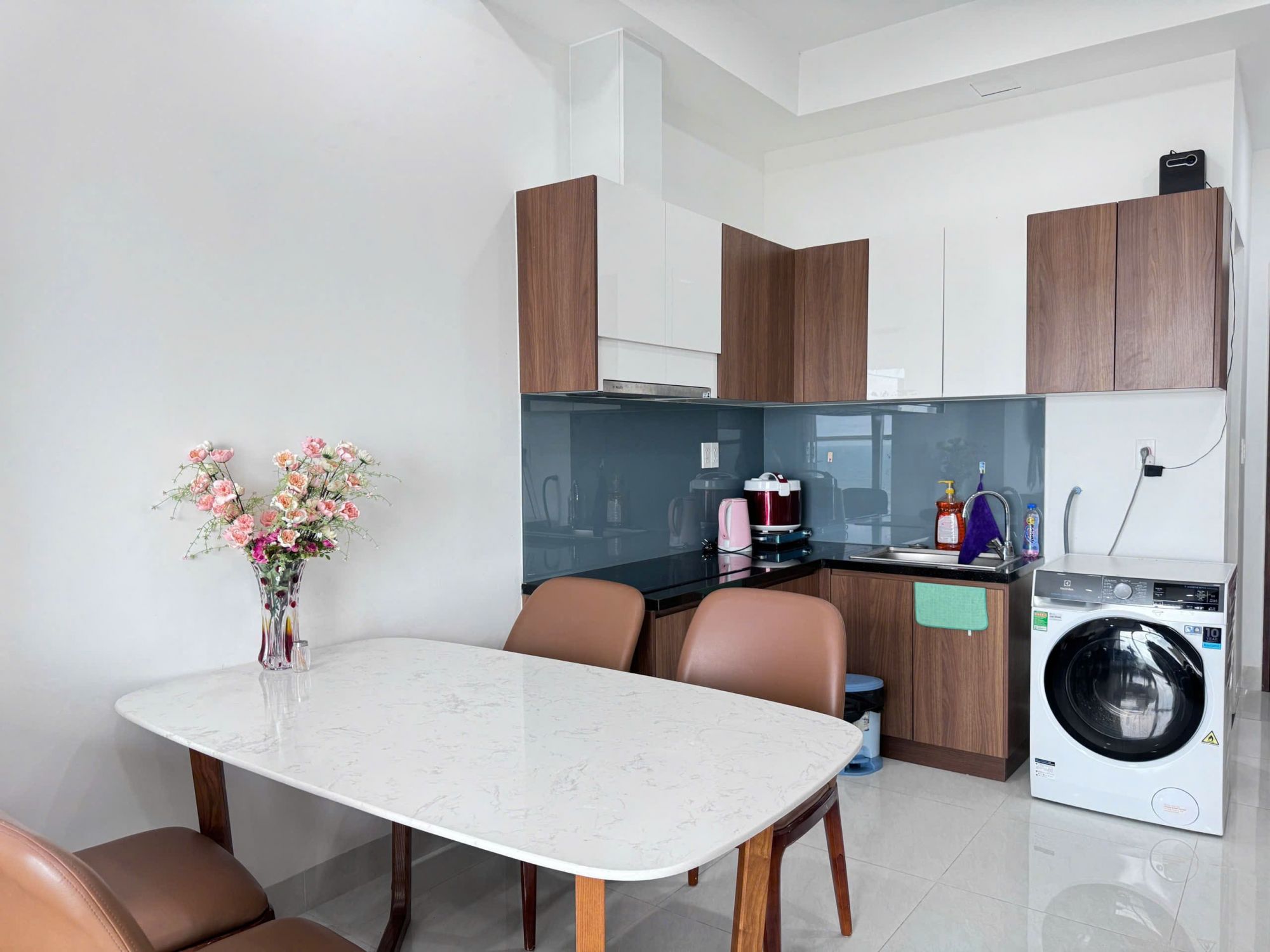 • Khu bếp đầy đủ dụng cụ nấu ăn, tủ lạnh, lò vi sóng và các thiết bị cần thiết
