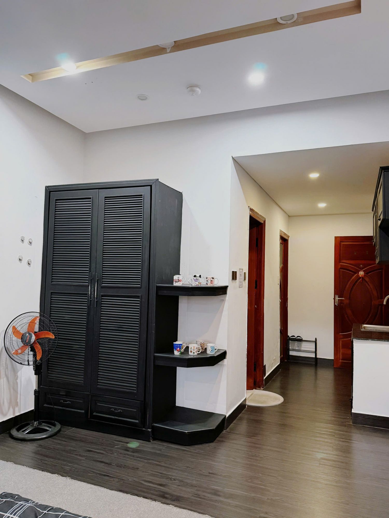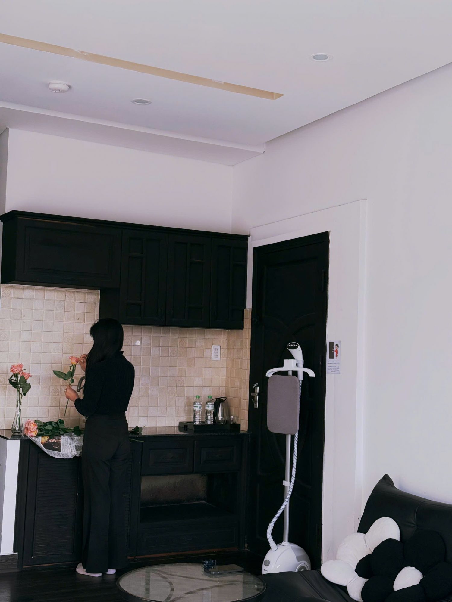 Căn homestay tạo ấn tượng bằng nhịp điệu hài hòa giữa màu sắc ấm và chất liệu mộc. Ánh sáng len qua cửa sổ lớn, phủ lên tường một lớp vàng dịu khiến căn phòng trở nên gần gũi. Những vật dụng nhỏ xinh hiện diện vừa đủ, giữ được sự tối giản nhưng không lạnh lẽo. Không gian chung mở ra cảm giác thân thiện, nơi ai yêu sự yên tĩnh đều có thể tìm thấy nhịp điệu phù hợp để nghỉ ngơi hay làm việc thoải mái.