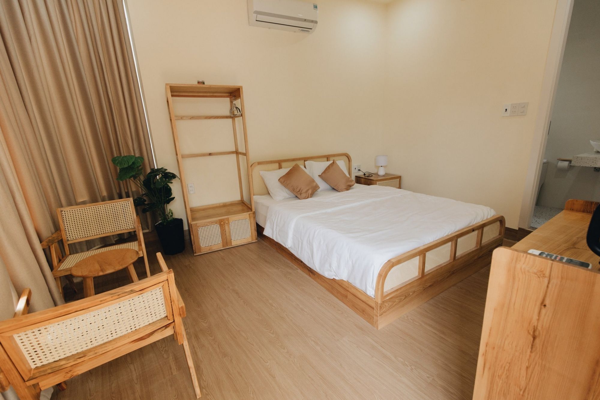 Homestay có nhiều loại phòng từ đơn, đôi đến phòng gia đình, phù hợp cho đa dạng nhu cầu. Các phòng đều thiết kế thoáng với cửa sổ lớn, đón ánh sáng tự nhiên, giúp không gian luôn dễ chịu và thoáng đãng.