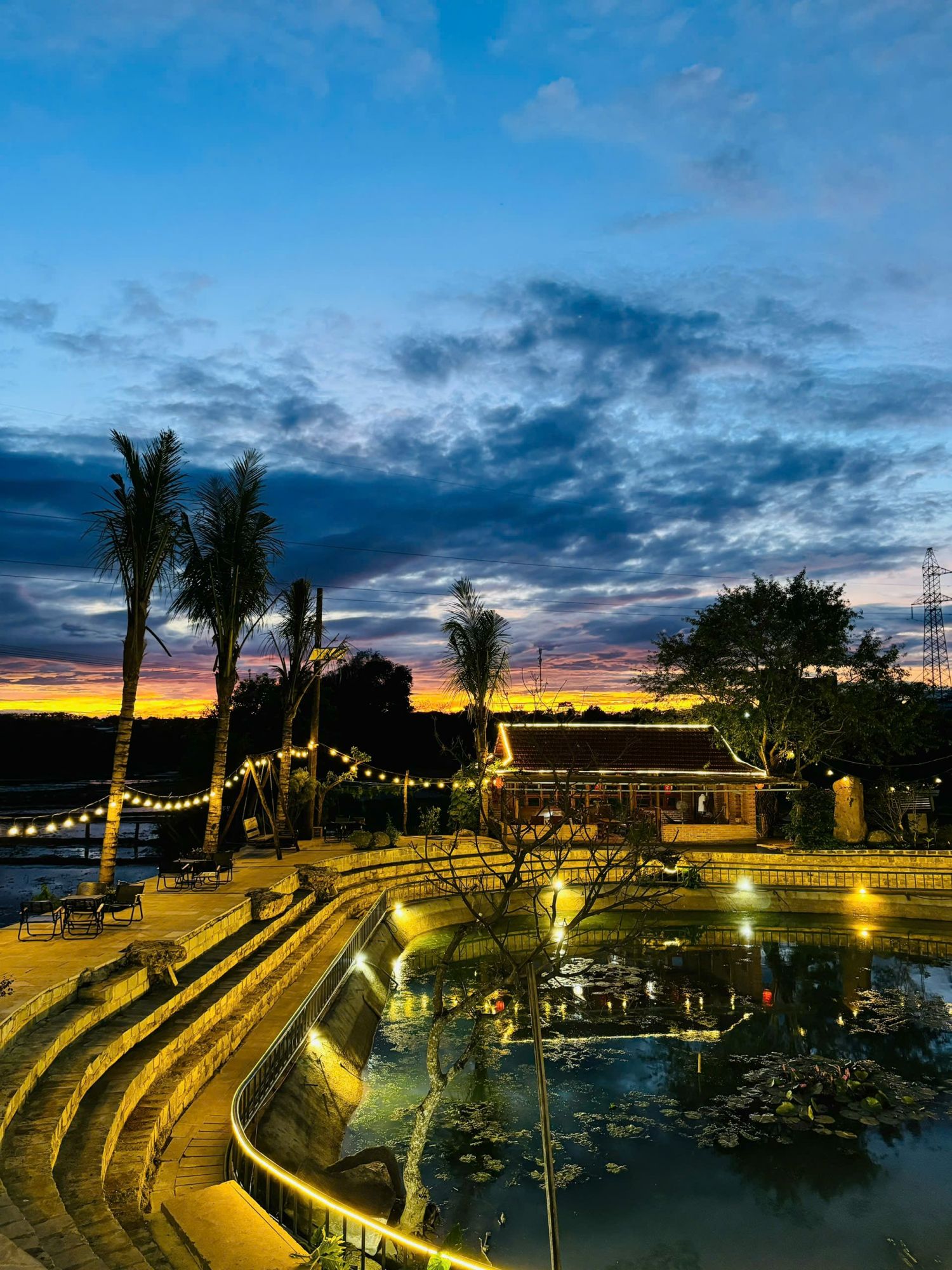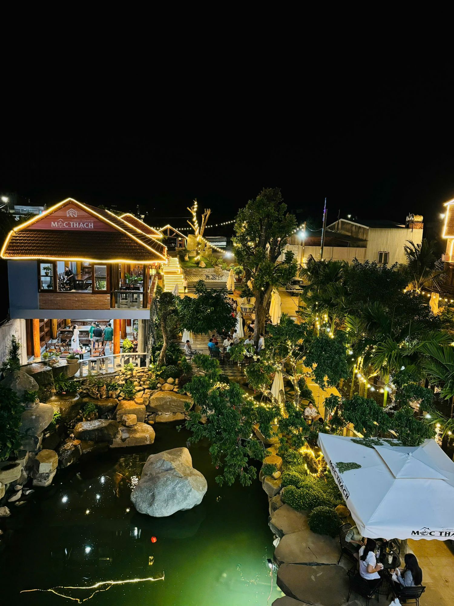 Khuôn viên của Mộc Thạch vô cùng rộng rãi và được chăm chút tỉ mỉ với những góc decor mộc mạc nhưng tinh tế. Điểm nhấn đặc biệt là không gian hồ nước cực chill 🌿 – nơi bạn có thể ngồi thưởng thức ly café thơm, thả trôi tâm trí và tận hưởng sự bình yên hiếm có giữa lòng thị trấn. Cảnh quan sạch sẽ, thoáng đãng cùng ánh sáng tự nhiên giúp mọi góc nhỏ đều trở thành background sống ảo đẹp mắt.