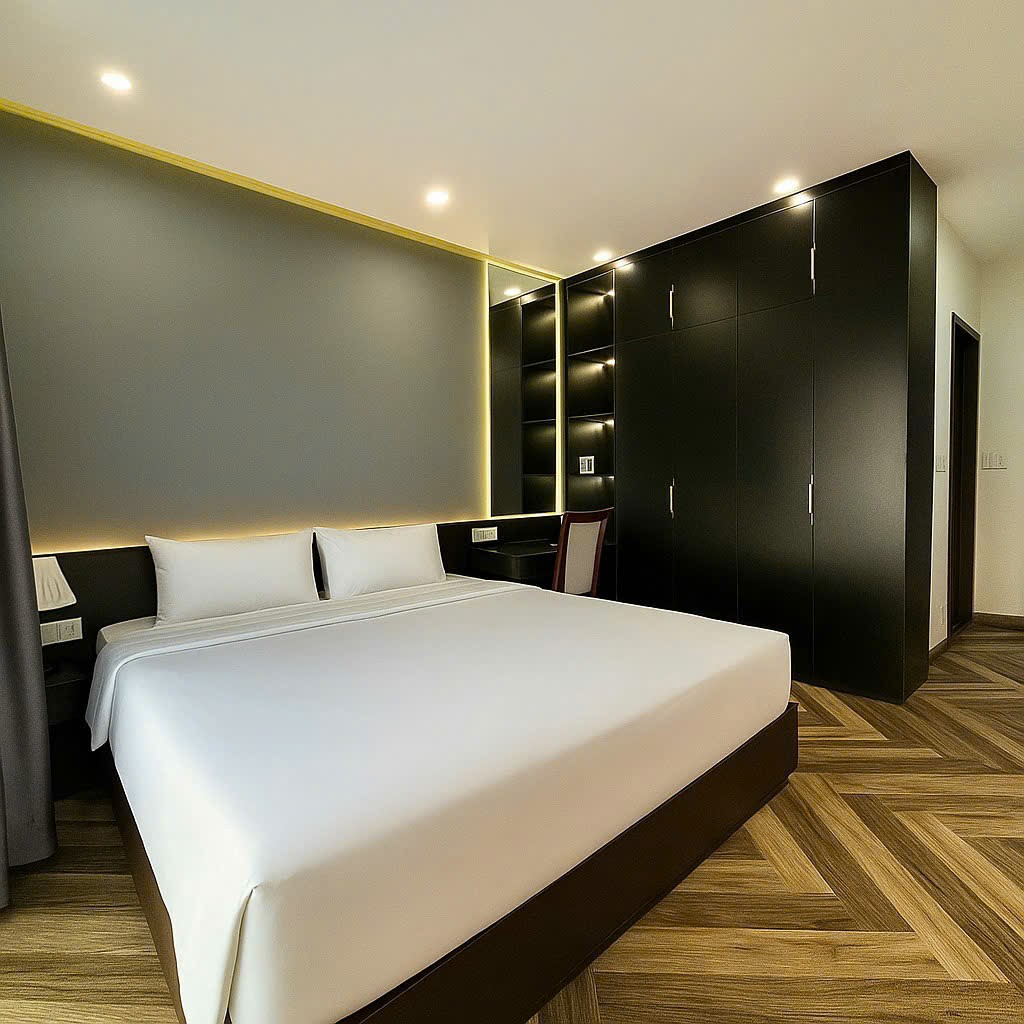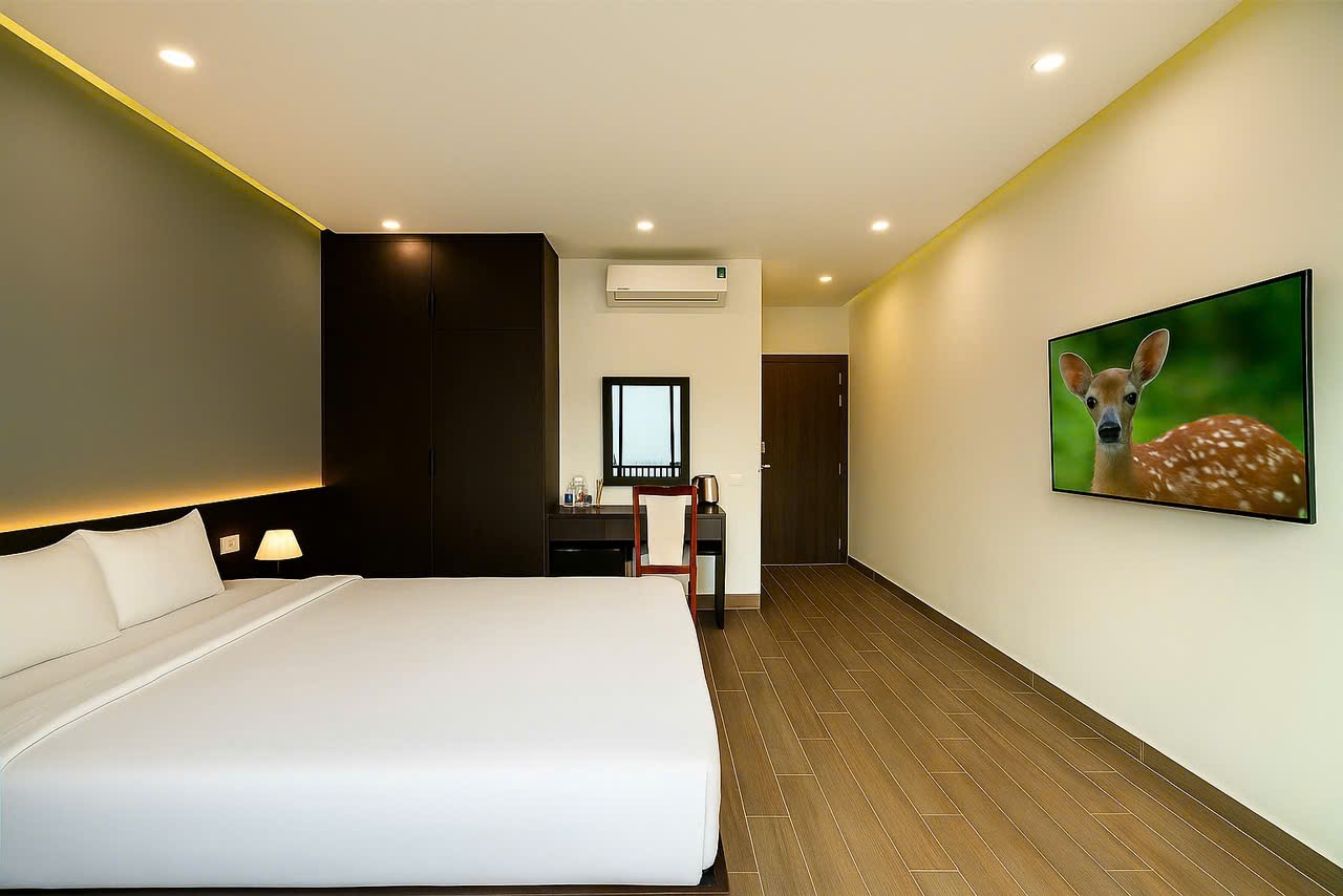 Các phòng nghỉ tại đây được thiết kế hiện đại, có ban công thoáng đãng, trang bị đầy đủ tiện nghi như điều hòa, TV màn hình phẳng và phòng tắm riêng với đầy đủ vật dụng cá nhân miễn phí. Ngoài ra, mỗi căn còn được trang bị tủ lạnh, minibar, khu bếp và ấm đun nước, mang lại cảm giác thoải mái như đang ở nhà.