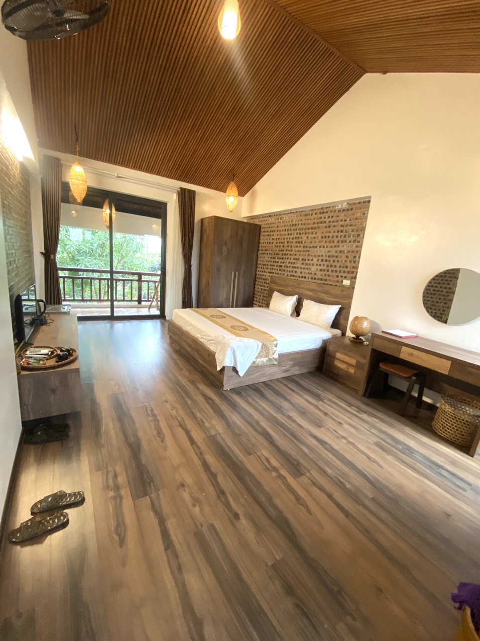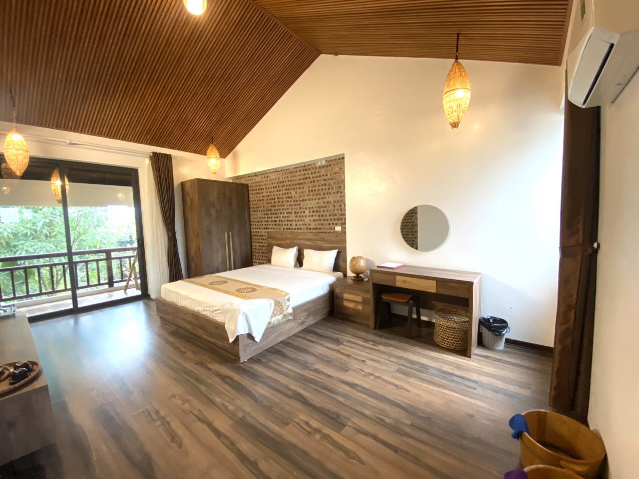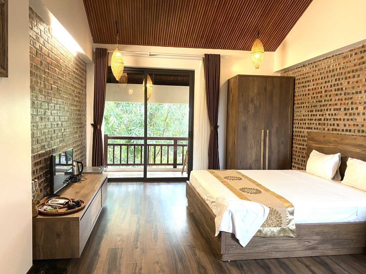 Nép mình trong một ngôi làng Bắc Bộ nhỏ xinh, Nan House sở hữu không gian xanh mát với nhiều cây cối, view núi thoáng đãng, hồ sen và hồ cá yên ả. Tổng thể được thiết kế tinh tế, hài hòa giữa thiên nhiên và không gian phòng nghỉ sang trọng, tiện nghi, phù hợp cho cả chuyến đi một mình, nhóm bạn hay kỳ nghỉ cùng gia đình.