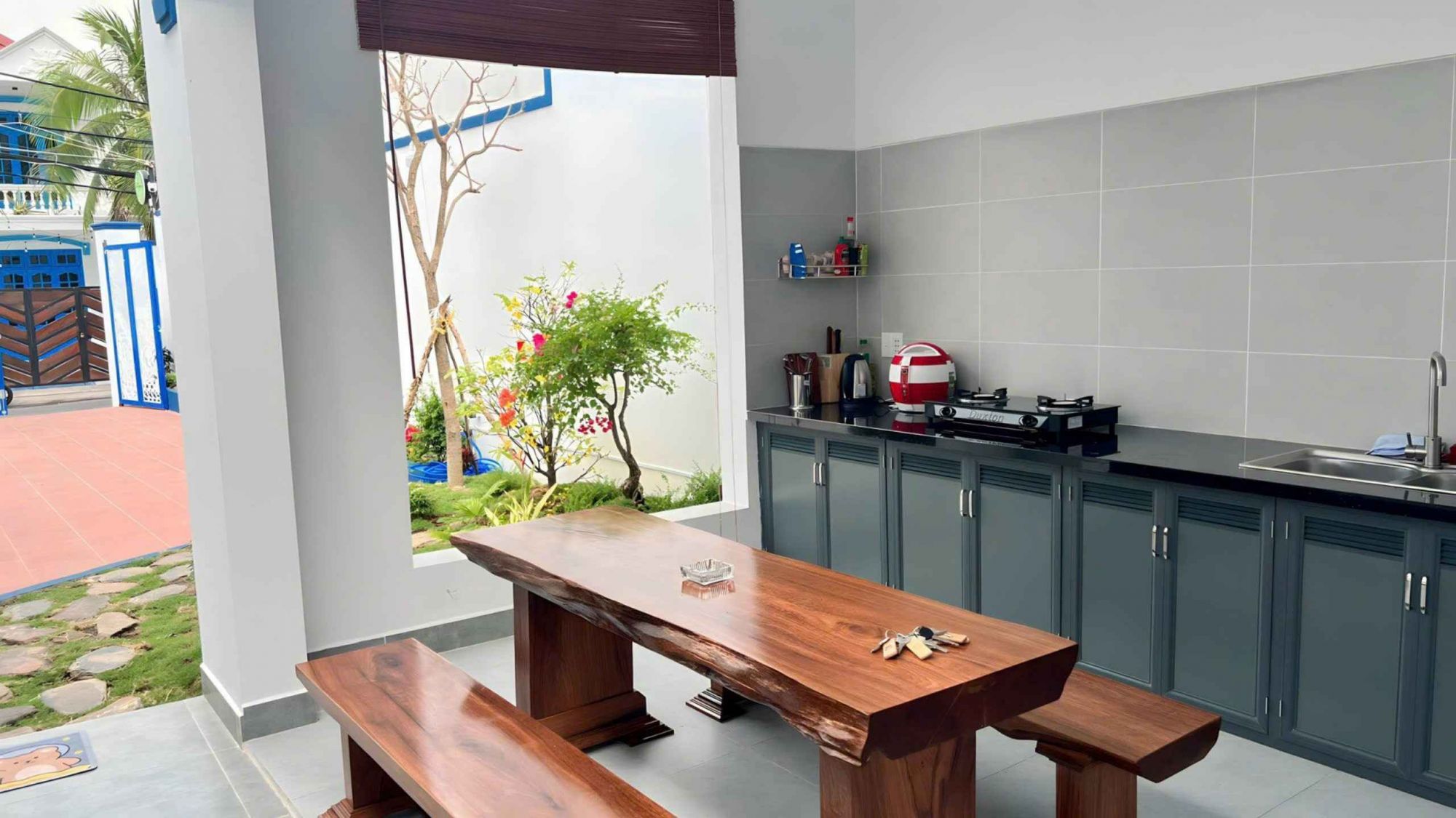 Một điểm nhấn nổi bật của Nguyên Căn 40B Nguyễn Hiền chính là khu sân vườn thoáng mát, nơi du khách có thể tổ chức những bữa tiệc BBQ vui vẻ. Homestay trang bị sẵn bếp riêng, gia vị cơ bản và loa kẹo kéo miễn phí, tạo nên không gian giải trí sôi động mà vẫn thân mật. Đây cũng là nơi lý tưởng để cả nhóm quây quần cùng nhau tận hưởng buổi tối gió biển.