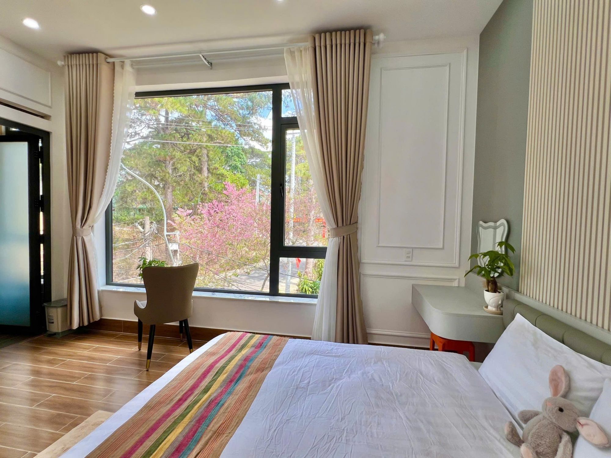 Có những buổi sáng Đà Lạt thức dậy trong làn sương mỏng, ánh nắng khẽ len qua tán thông và phủ lên những căn nhà một gam màu dịu dàng rất riêng. Nhà An Cozy mang đến cảm giác ấy ngay từ khi bước vào: một không gian hiện đại, thoáng đãng nhưng vẫn giữ được sự ấm áp đặc trưng của thành phố ngàn hoa. Thiết kế tinh giản, đường nét gọn gàng kết hợp cùng ánh sáng tự nhiên tạo nên tổng thể vừa trẻ trung vừa thư thái, phù hợp cho những chuyến đi đông người nhưng vẫn cần sự riêng tư và thoải mái.