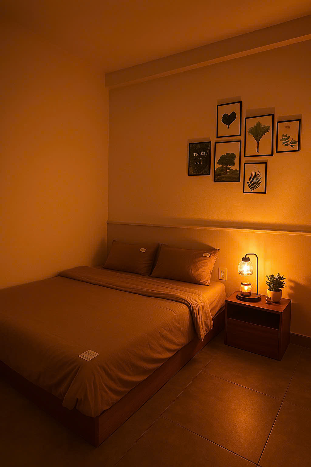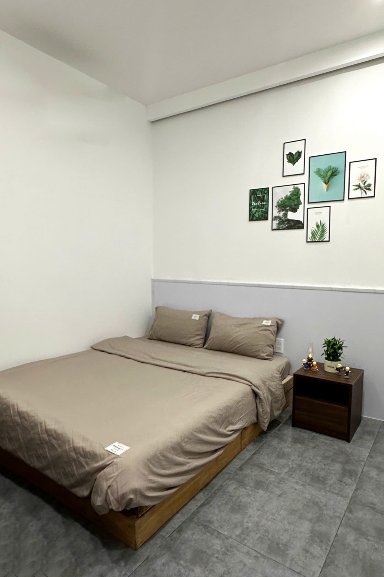 Không gian của homestay được xây dựng theo phong cách tối giản, kết hợp hài hòa giữa gỗ, tre và ánh sáng tự nhiên. Những gam màu ấm áp, điểm xuyết vài món đồ trang trí xinh xắn, tạo cảm giác thân thuộc như ở nhà. Mỗi góc đều có sự chỉn chu, từ khu tiếp khách, phòng ngủ cho đến ban công nhỏ nơi có thể phóng tầm mắt nhìn ngắm phố phường Huế.