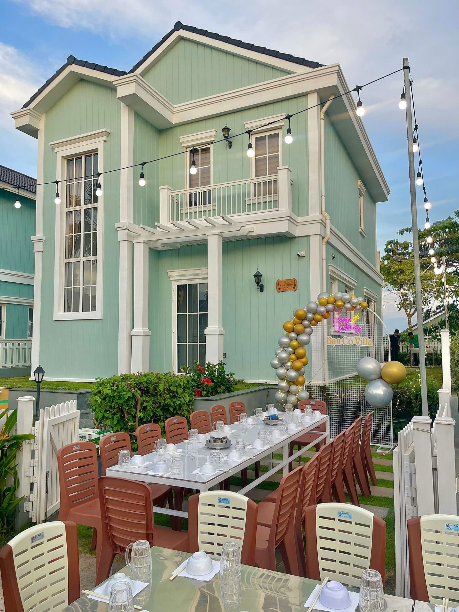 Sân ngoài trời rộng rãi, được bố trí khu vực nướng BBQ