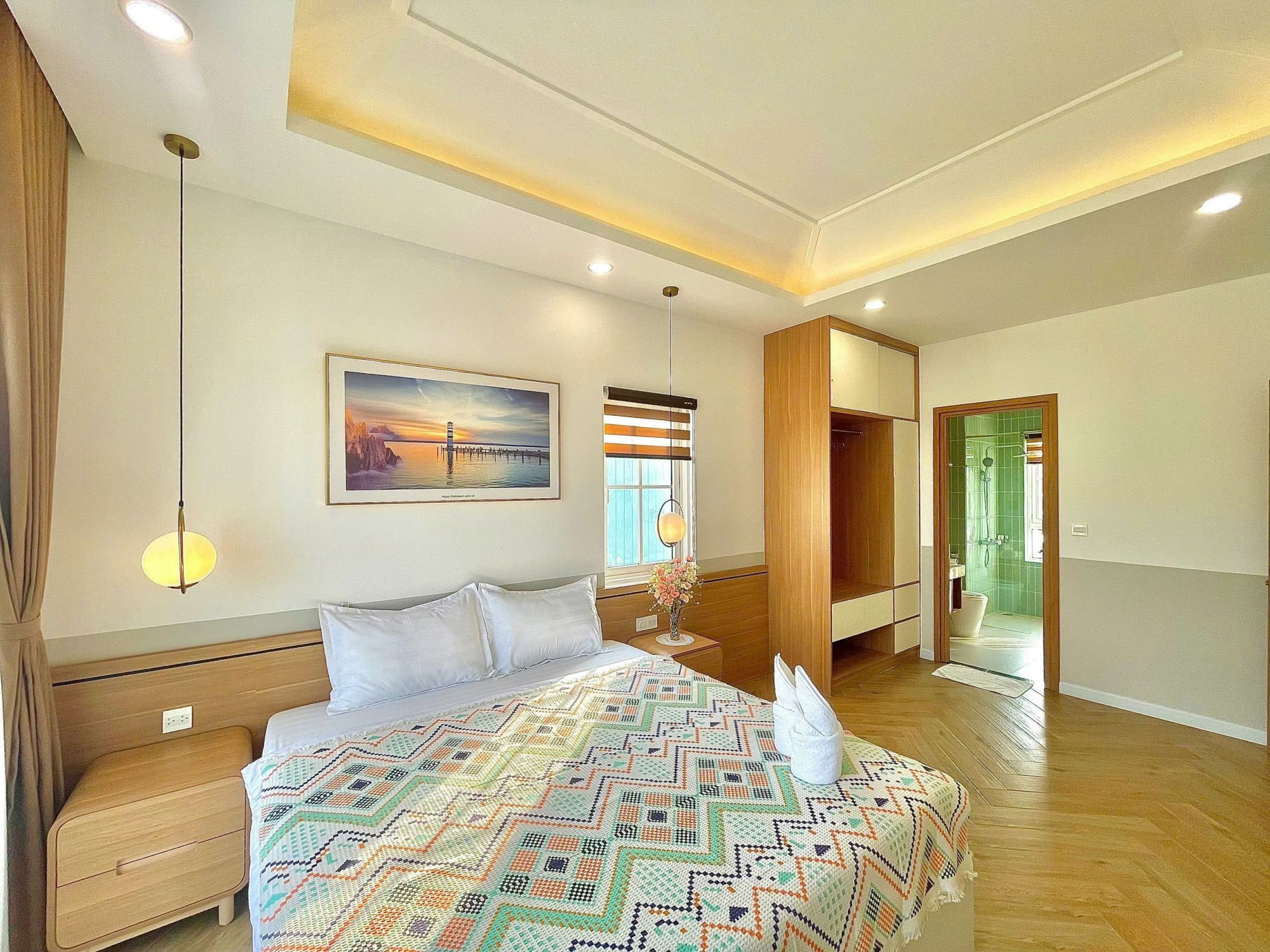 Phòng 1: Phòng master, 1 giường lớn, toilet riêng