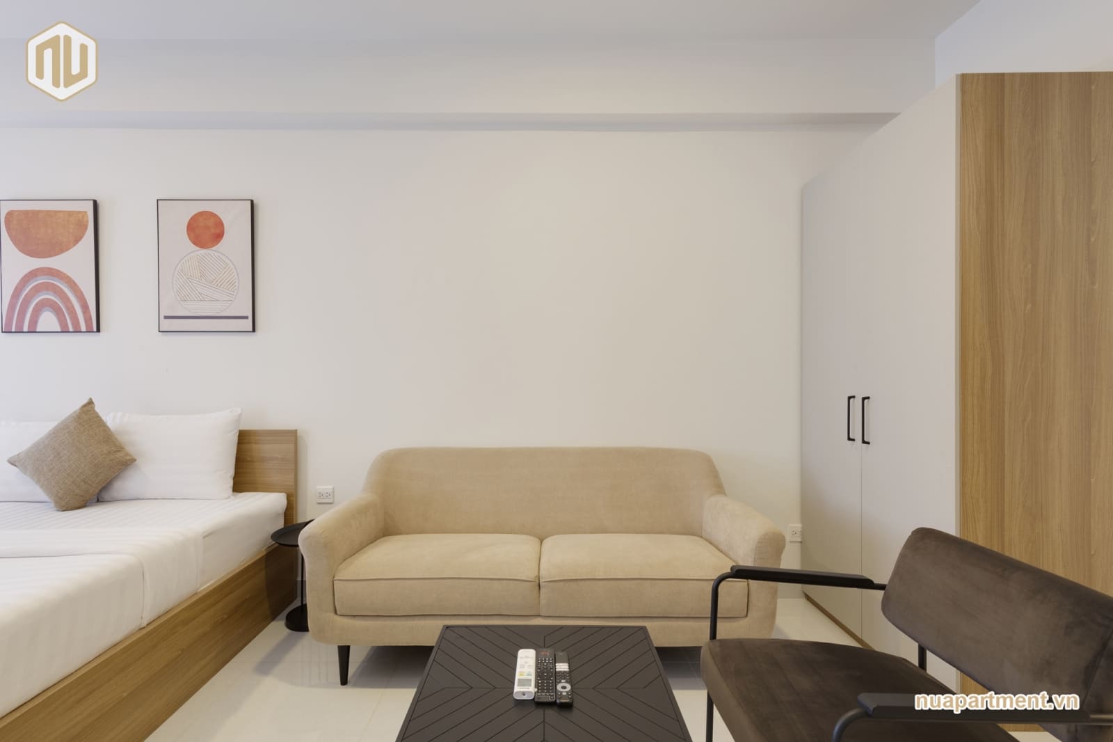 Nu Studio Soho Residence 7 được thiết kế với phong cách tối giản nhưng vẫn đầy đủ sự tinh tế và công năng. Diện tích rộng rãi, nội thất được bố trí hợp lý, tạo cảm giác thoáng đãng và thư giãn. Nu Studio Soho Residence 7 là studio để đáp ứng đa dạng nhu cầu lưu trú.
