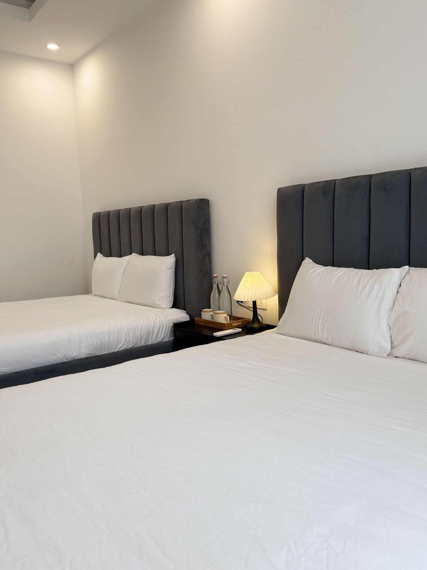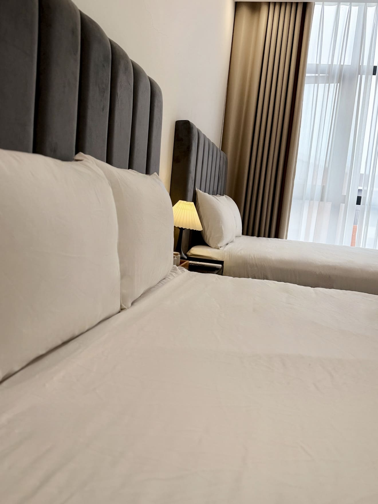 Đệm lò xo cao cấp dày 25cm, chăn ga được thay mới hoàn toàn cho mỗi lượt khách