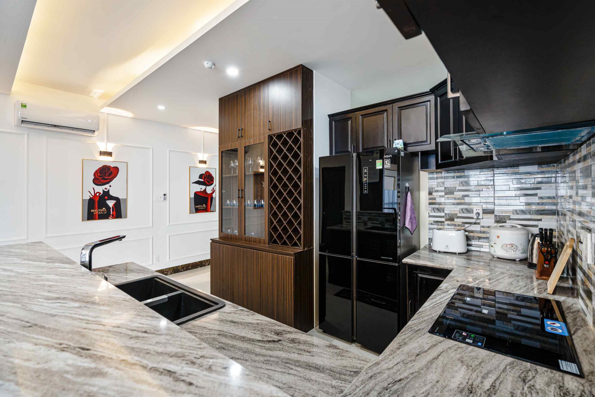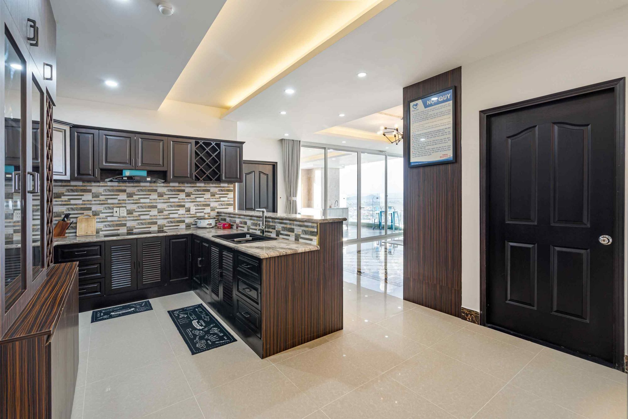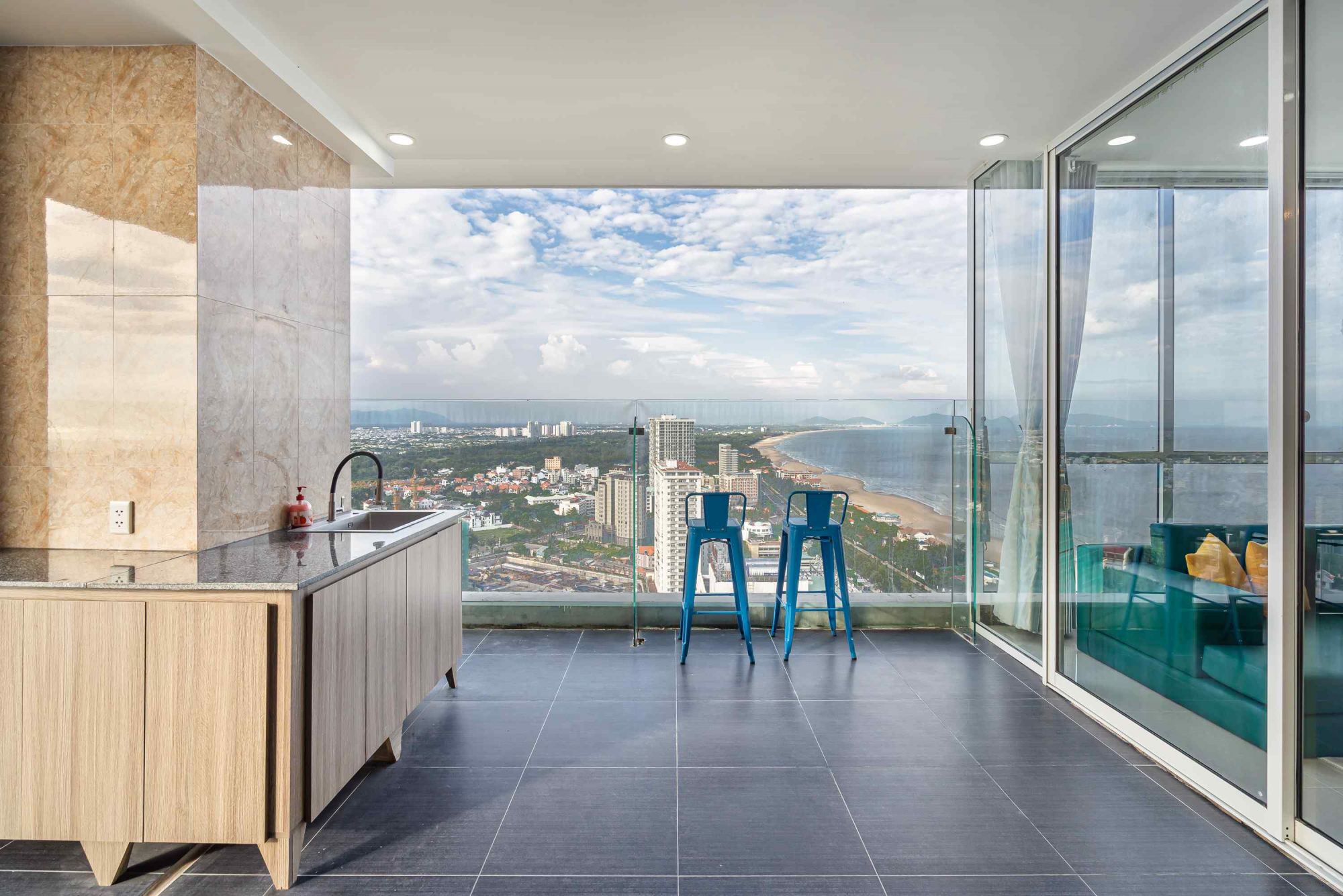 Điểm nhấn đặc biệt của Oasky Penthouseban công view biển – nơi lý tưởng để ngắm bình minh, thưởng trà buổi sáng hay đón gió biển mát lành vào chiều muộn. Căn hộ còn trang bị bếp nướng điện hiện đại, khu vực sinh hoạt chung rộng rãi, giúp các thành viên thoải mái tổ chức tiệc nhẹ hay bữa tối ấm cúng bên nhau.