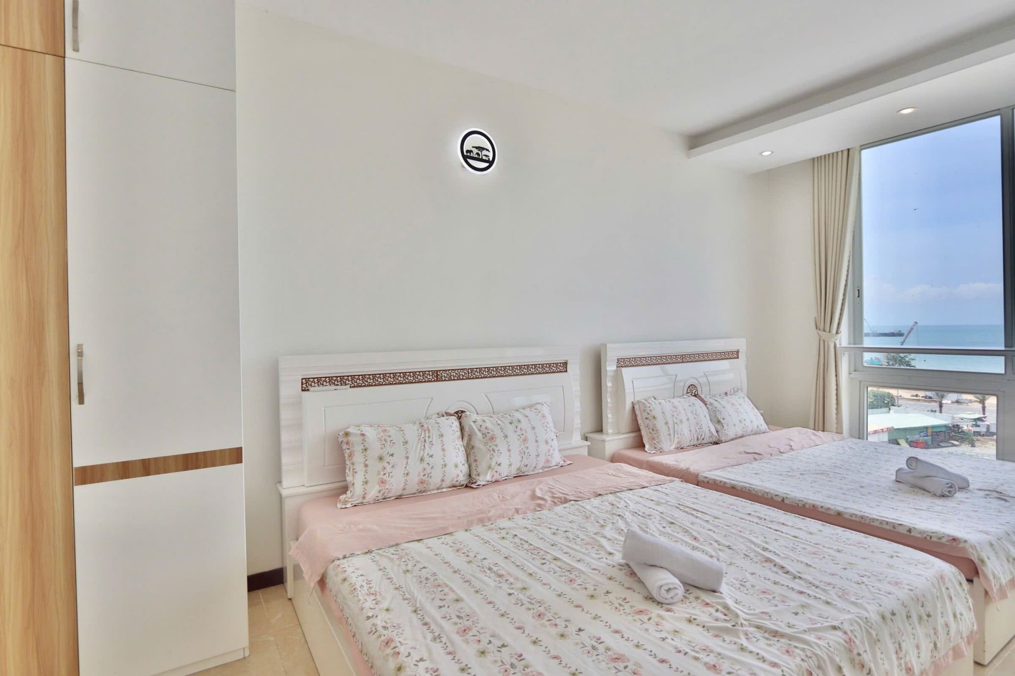 Nằm tại vị trí vô cùng thuận tiện, căn hộ chỉ cách bãi biển khoảng 50 mét. Du khách chỉ cần băng qua đường là đến ngay bãi tắm công cộng, thuận tiện cho các hoạt động như tắm biển, dạo bộ, hoặc ngắm hoàng hôn bên bờ biển. Khu vực xung quanh tòa nhà có đầy đủ các tiện ích như quán ăn, quán cà phê, cửa hàng tiện lợi, siêu thị mini và chợ hải sản.