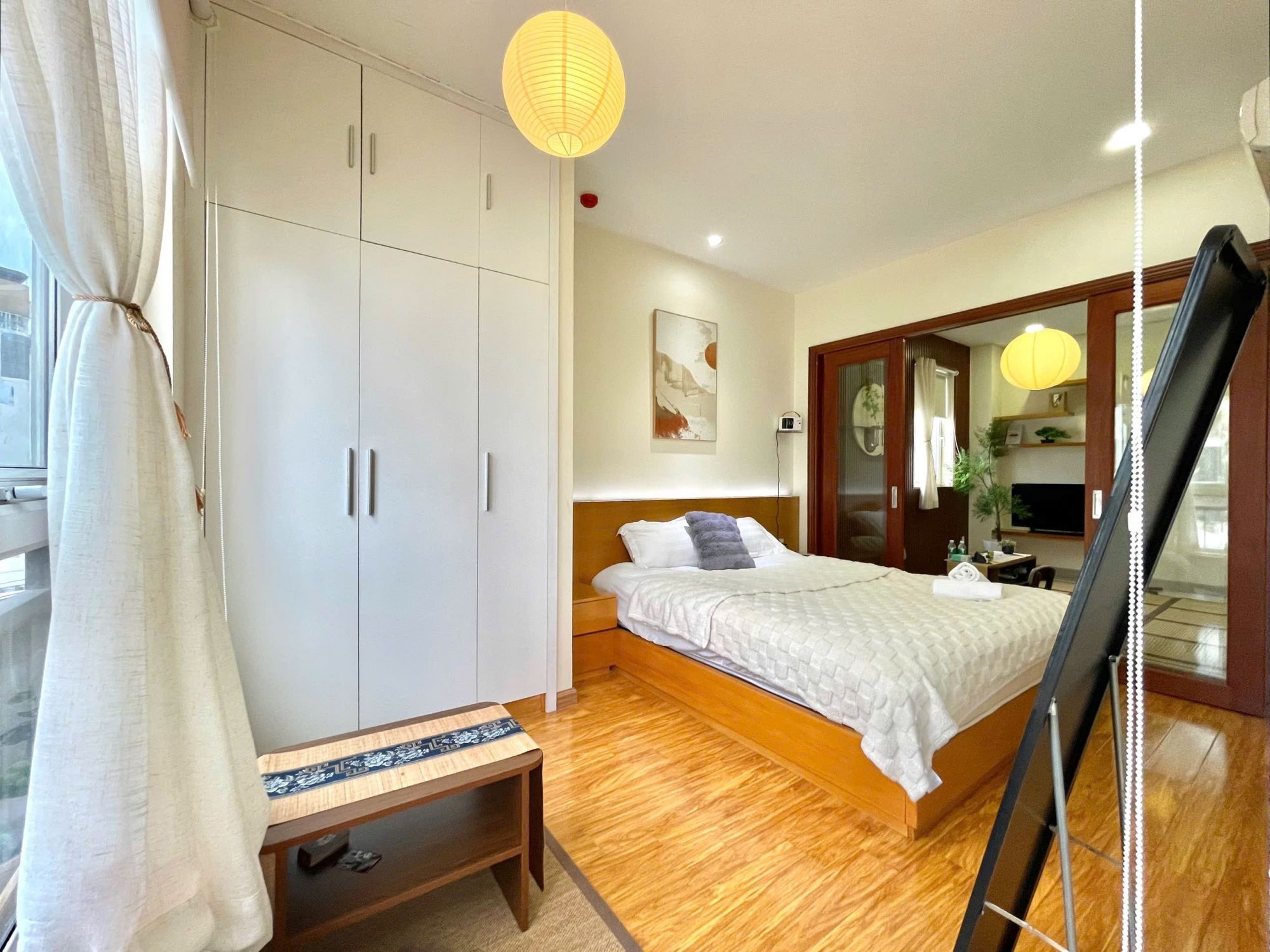 Không gian sống riêng tư, lãng mạn: Mỗi góc nhỏ tại OMI Homestay đều được chăm chút tỉ mỉ, với mục tiêu mang lại sự thoải mái tối đa cho khách và tận hưởng những bộ phim yêu thích với máy chiếu xịn sò và kho phim Netflix bất tận.