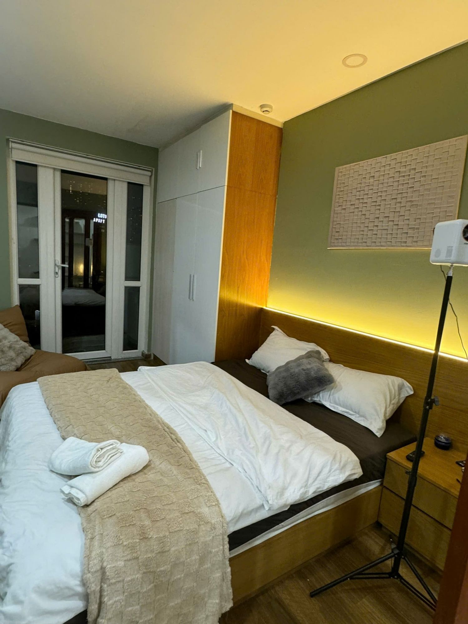 • Giải trí tại phòng với máy chiếu và Netflix: Việc trang bị máy chiếu và khả năng kết nối Netflix hoặc điện thoại cho phép hai bạn có những buổi tối lãng mạn cùng nhau xem phim, chương trình yêu thích ngay tại phòng.