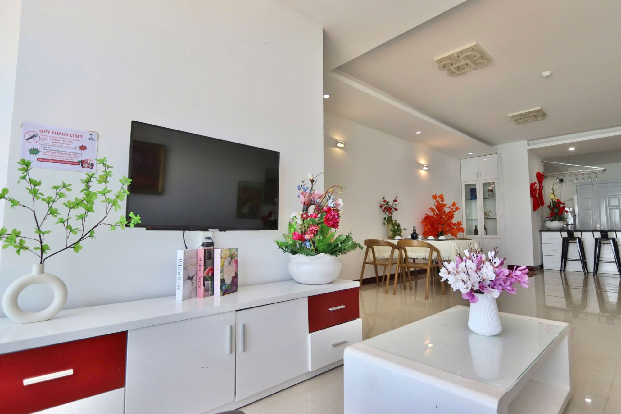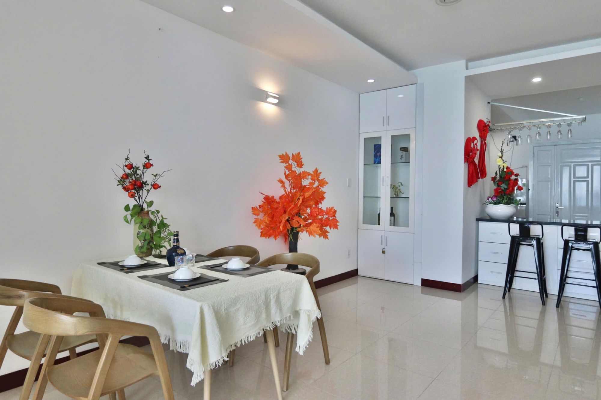 Không gian căn hộ rộng rãi, thoáng mát, được trang bị đầy đủ tiện nghi. Phòng ngủ và phòng khách có cửa kính lớn đón ánh sáng tự nhiên, mang đến cảm giác dễ chịu và thư giãn.