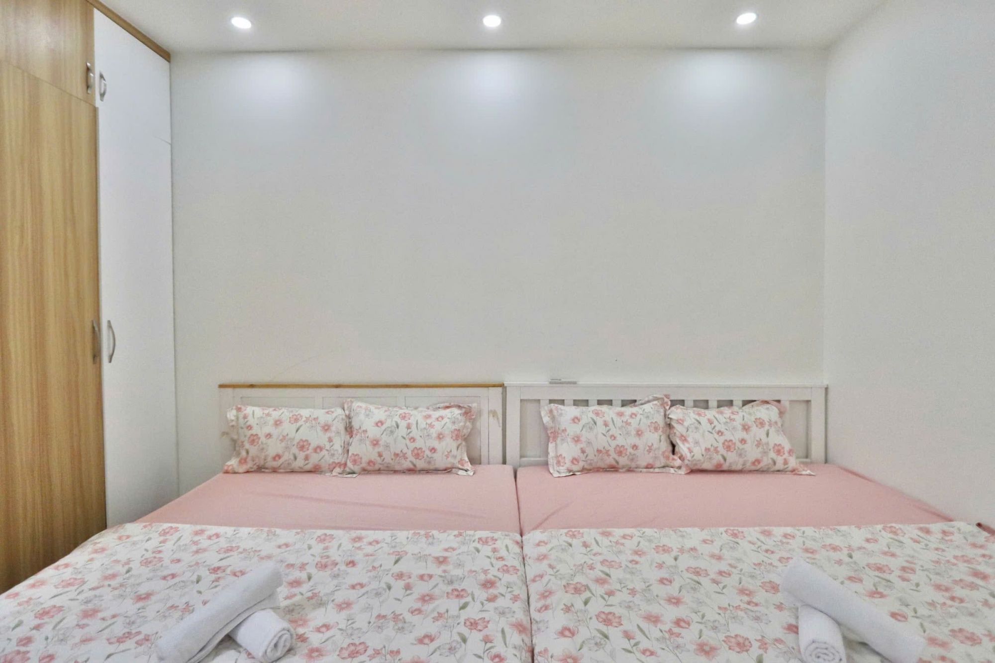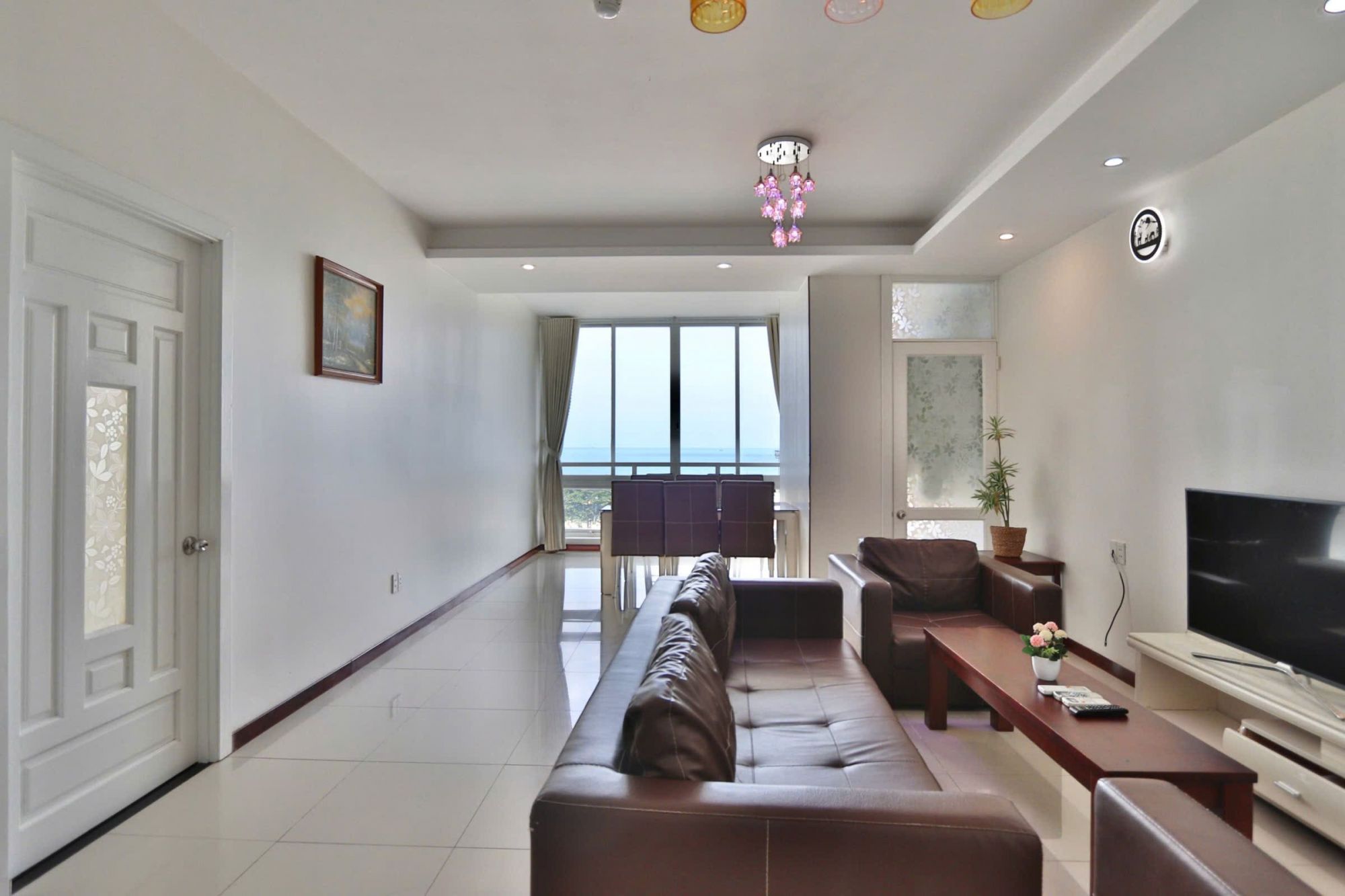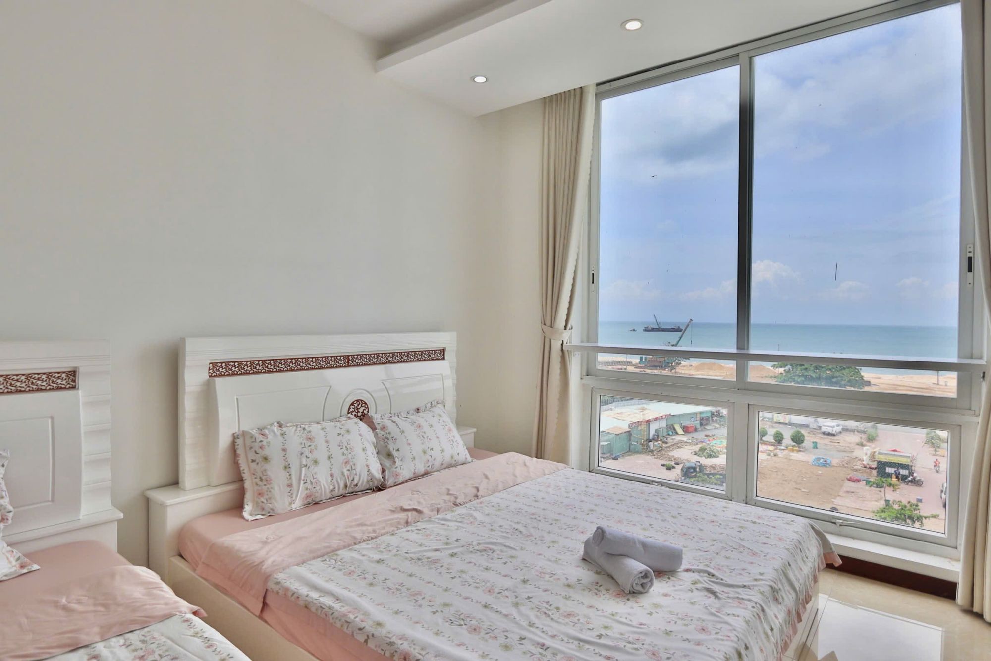 Không gian căn hộ rộng rãi, thoáng mát, được trang bị đầy đủ tiện nghi. Phòng ngủ và phòng khách có cửa kính lớn đón ánh sáng tự nhiên, mang đến cảm giác dễ chịu và thư giãn.