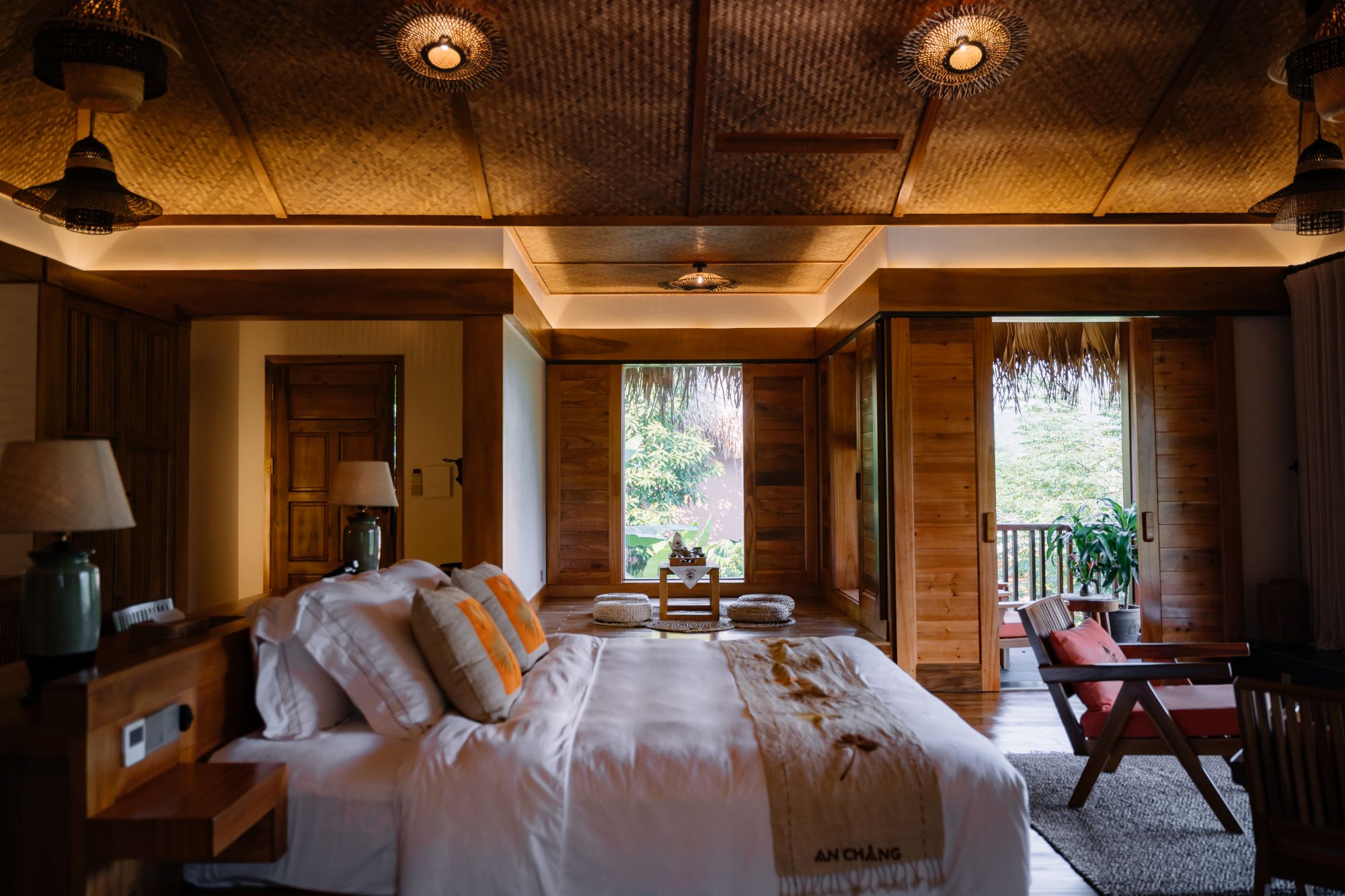 Ban công 10m² mở ra tầm nhìn tuyệt đẹp ra hồ nước phẳng lặng, những dãy núi trùng điệp và bản làng yên bình phía xa. Buổi sáng ánh nắng chạm nhẹ mặt hồ, buổi chiều gió núi thổi qua tạo cảm giác mát lành, còn buổi tối lại mang đến sự tĩnh tại hiếm có – tất cả hòa quyện để tạo nên một khung cảnh thư giãn khó quên.