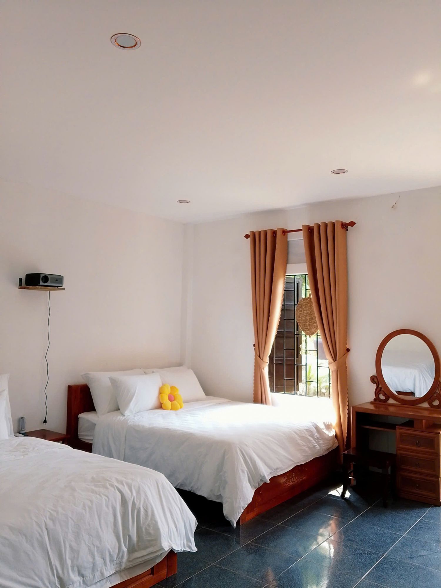 Từ đây, bạn chỉ mất vài phút lái xe để đến Lăng Tự Đức, Đồi Vọng Cảnh hay Lăng Minh Mạng. Không gian có sân nướng BBQ rộng rãi, bãi đỗ xe ô tô thoải mái. Phòng nghỉ được trang bị máy chiếu riêng, thiết kế kín đáo, phù hợp cho cặp đôi, gia đình trẻ hoặc những ai đang tìm một khoảng nghỉ yên bình và trọn vẹn.