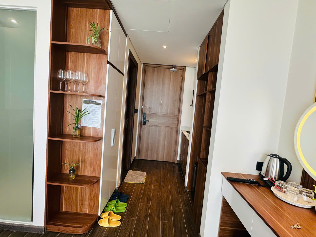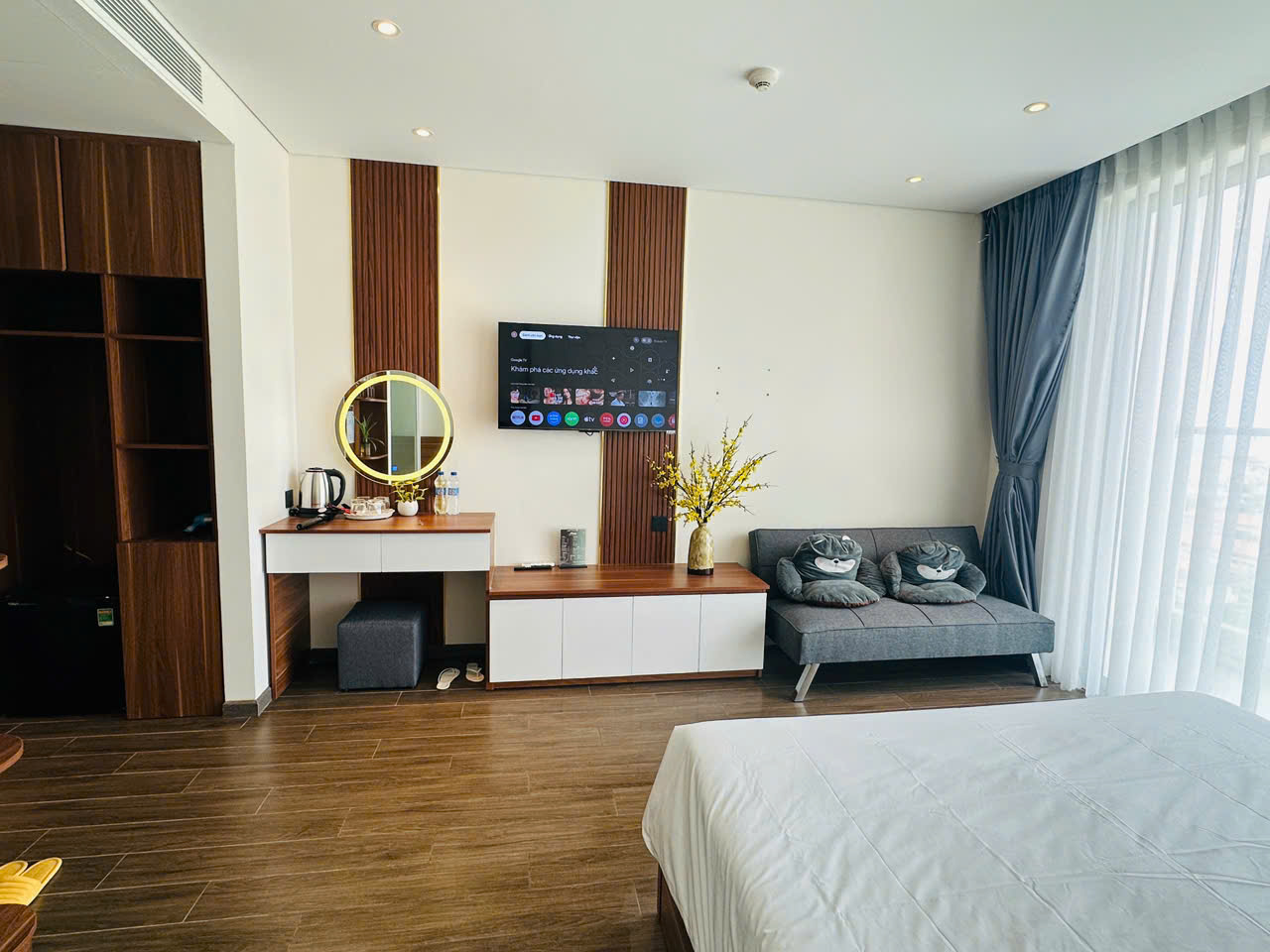 Tại đây, mỗi căn hộ đều có ban công riêng rộng rãi, cho phép du khách thu trọn vào tầm mắt cả thành phố lẫn đường chân trời xanh thẳm. Việc nhâm nhi ly cà phê buổi sớm hay thư giãn chiều muộn trên ban công đầy gió cũng trở thành một phần không thể thiếu trong trải nghiệm. Đặc biệt, hồ bơi vô cực nằm trên tầng cao nhất của khu căn hộ chính là điểm nhấn không thể bỏ qua – nơi lý tưởng để ngắm hoàng hôn rực rỡ trong một khung cảnh “chill” đúng nghĩa.
