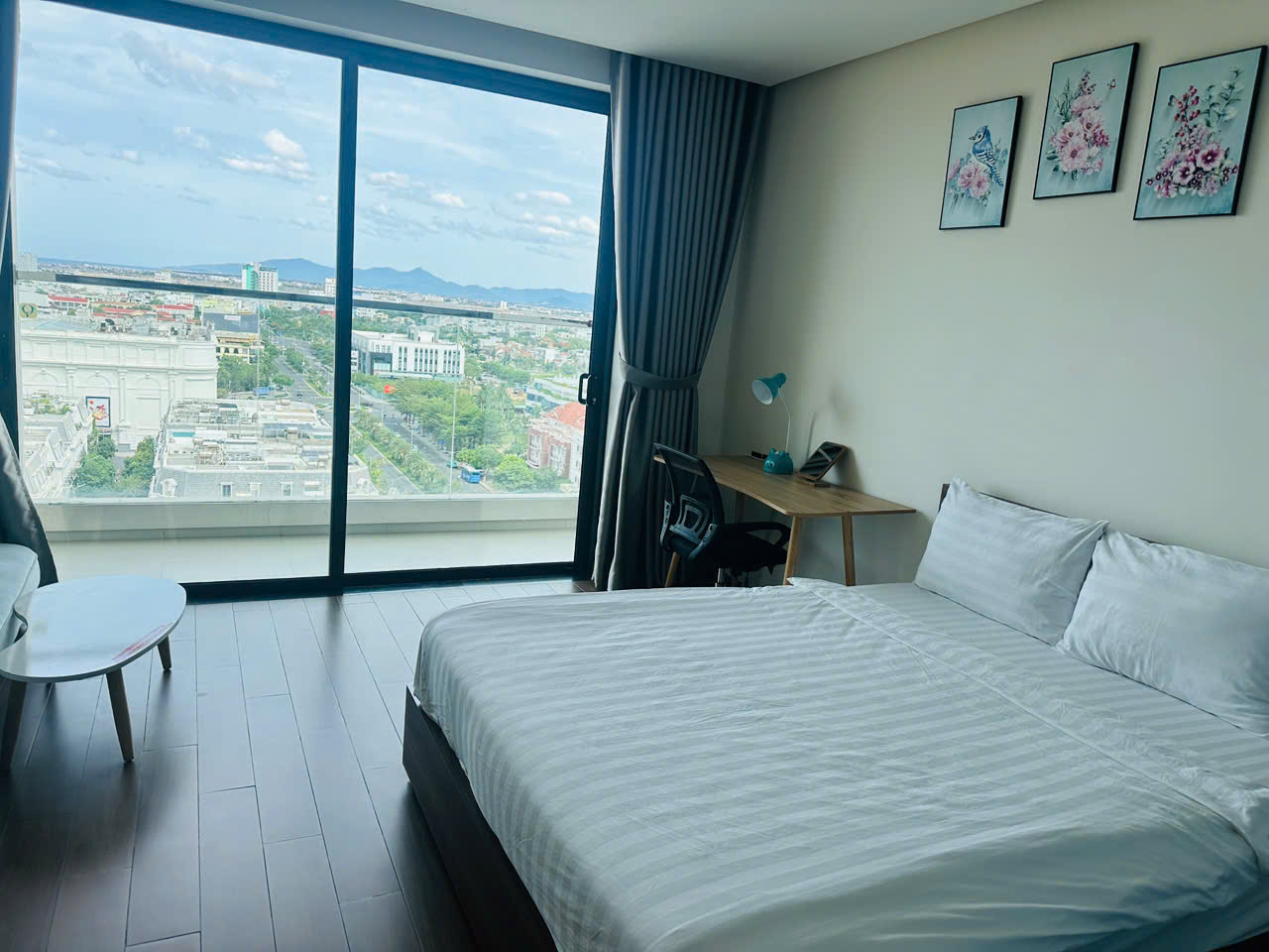 Tại đây, mỗi căn hộ đều có ban công riêng rộng rãi, cho phép du khách thu trọn vào tầm mắt cả thành phố lẫn đường chân trời xanh thẳm. Việc nhâm nhi ly cà phê buổi sớm hay thư giãn chiều muộn trên ban công đầy gió cũng trở thành một phần không thể thiếu trong trải nghiệm. Đặc biệt, hồ bơi vô cực nằm trên tầng cao nhất của khu căn hộ chính là điểm nhấn không thể bỏ qua – nơi lý tưởng để ngắm hoàng hôn rực rỡ trong một khung cảnh “chill” đúng nghĩa.