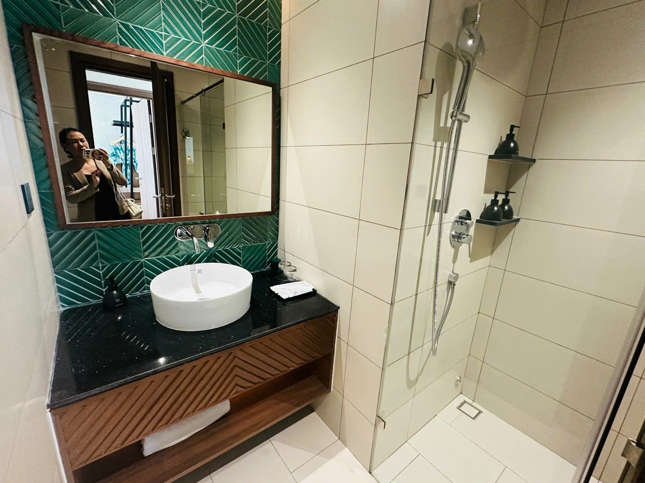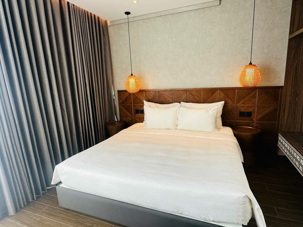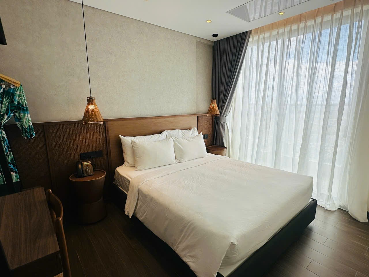 Một số phòng còn có bồn tắm thư giãn, rất lý tưởng để ngâm mình sau một buổi chiều lang thang giữa những cung đường ven biển hoặc chợ địa phương. Từng chi tiết nhỏ đều được chăm chút, từ khăn tắm thơm tho cho đến góc ban công nhỏ xinh để ngồi đọc sách hay nhâm nhi ly cà phê sáng.