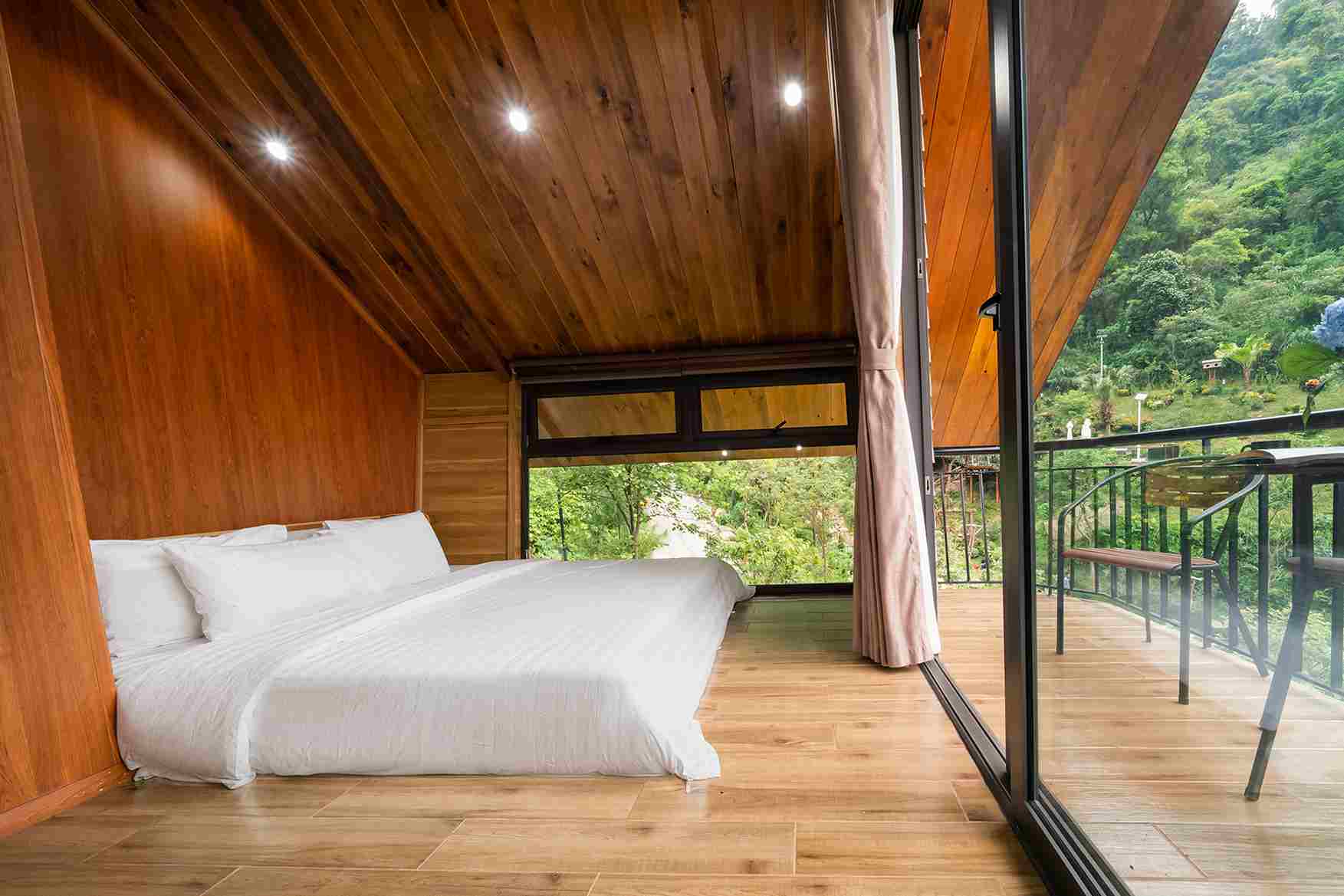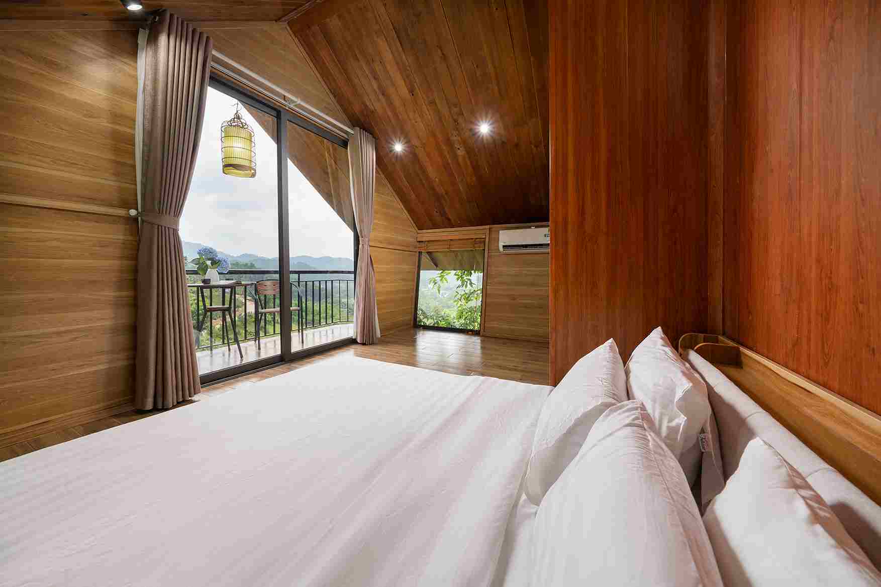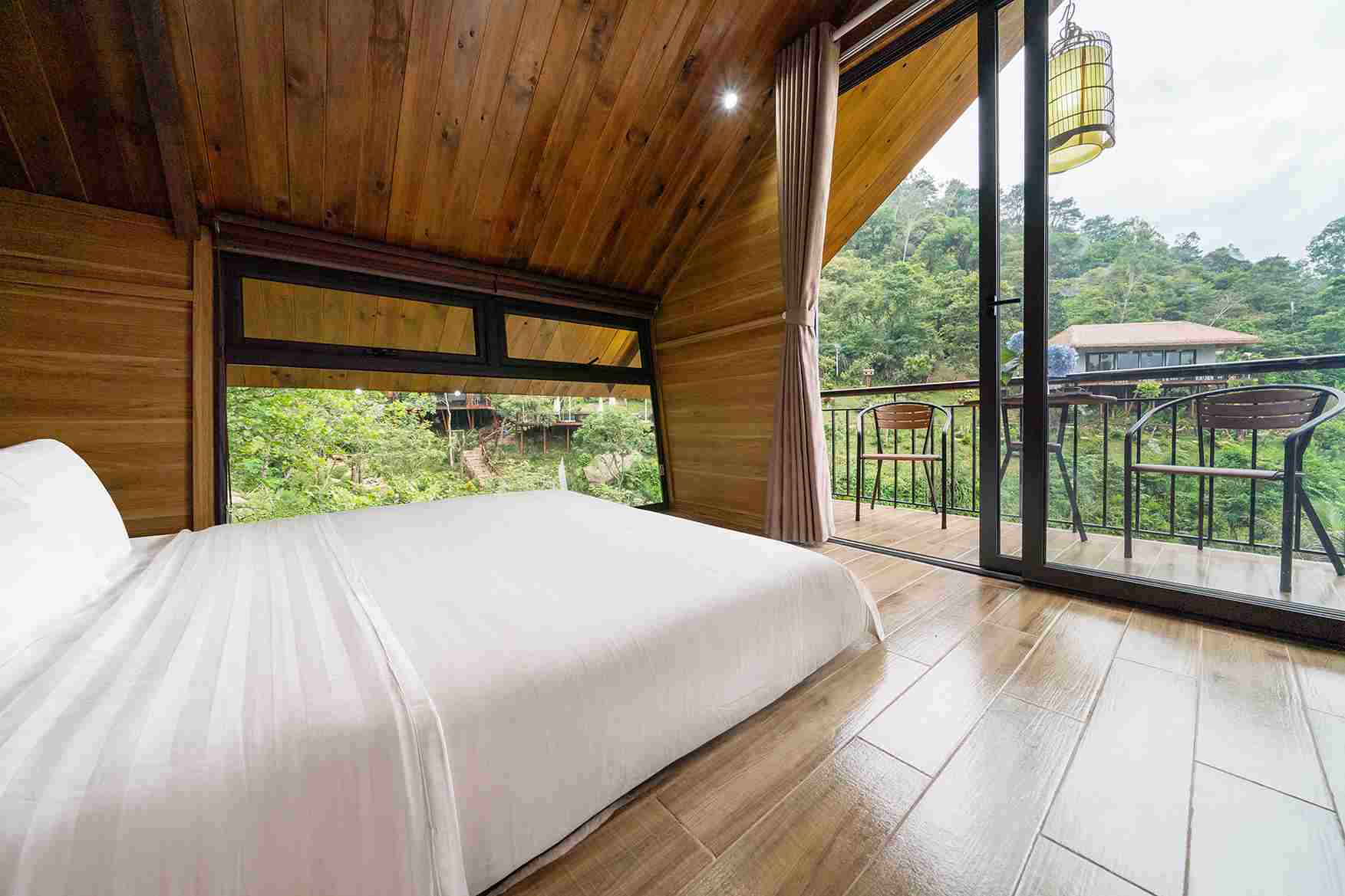 Ban công lãng mạn: Ban công rộng rãi, có sẵn bàn ghế để bạn thư giãn, ngắm nhìn khung cảnh rừng núi bạt ngàn và tận hưởng bầu không khí trong lành.