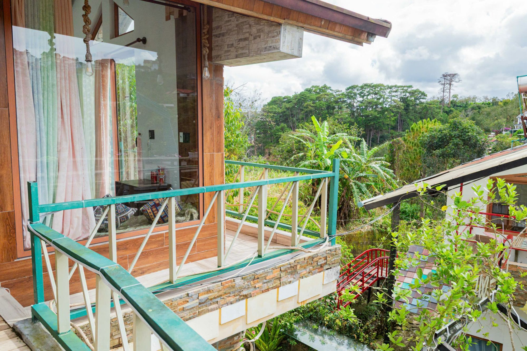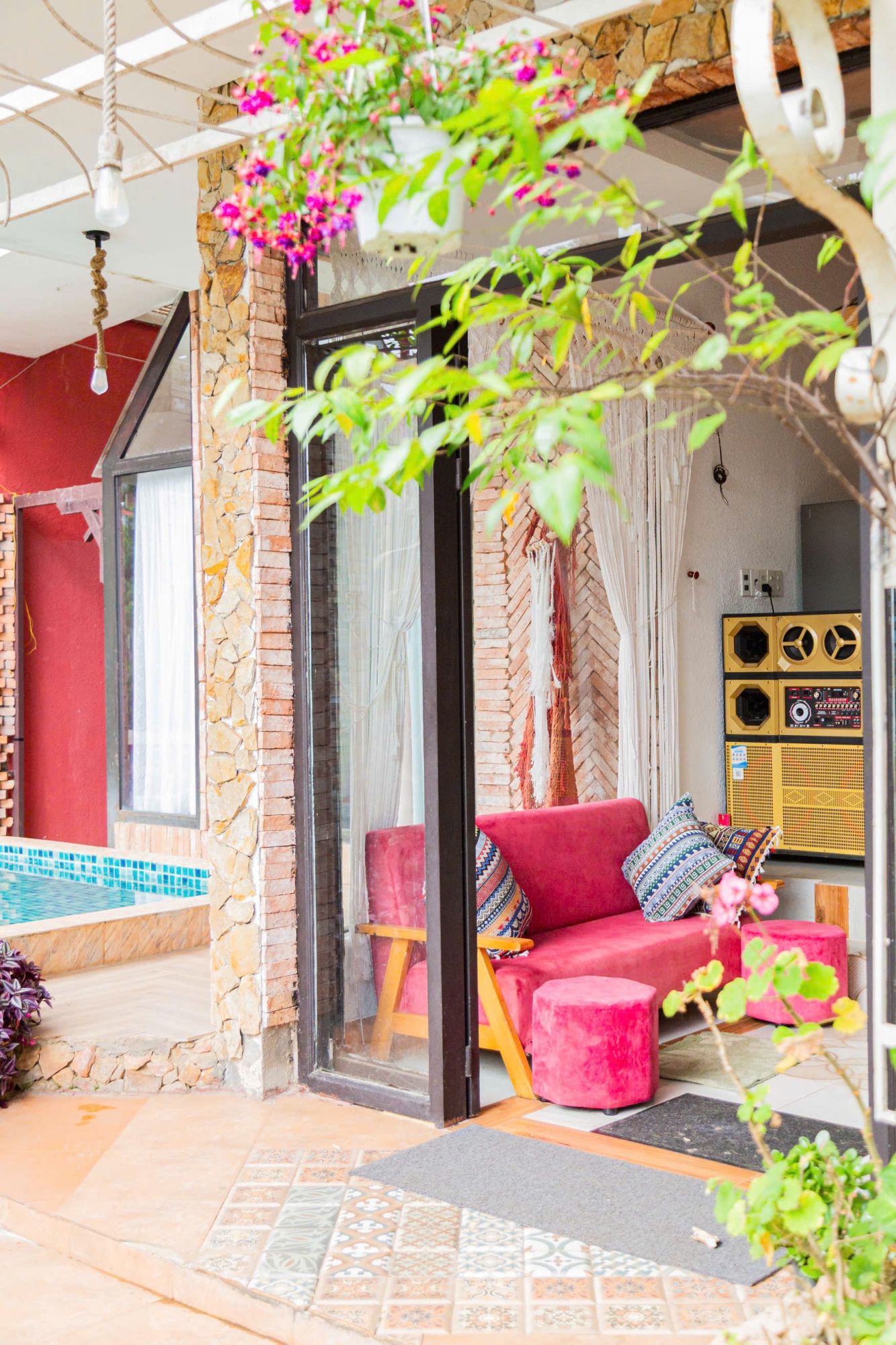 Điều làm nên sức hấp dẫn của Sweet Valley chính là không gian mở. Buổi tối, khu vực sân hiên lát gỗ rộng rãi biến thành điểm tụ họp lãng mạn, nơi tiếng cười giòn tan hòa quyện với ánh đèn vàng ấm áp. Ban ngày, bạn có thể thả mình trên chiếc sofa thư giãn ngoài trời với tông màu đỏ rực rỡ, đọc sách hay đơn giản là ngắm nhìn mây trời. Và thật tuyệt vời khi bắt đầu ngày mới bằng bữa sáng tại bàn ăn ngoài trời, nơi bạn có thể vừa thưởng thức ẩm thực, vừa tận hưởng không khí núi rừng tươi mới.