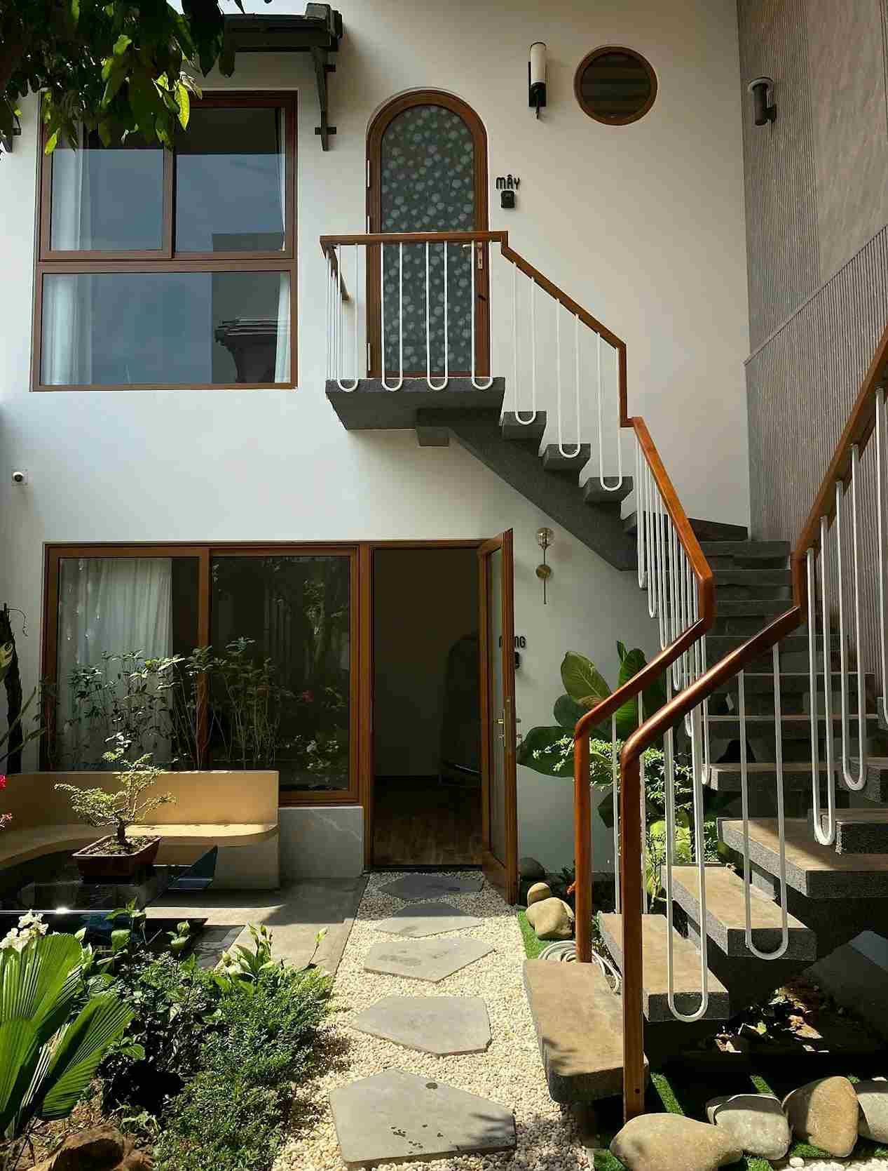 Không chỉ có nội thất tiện nghi, homestay còn sở hữu khoảng sân vườn thoáng mát – nơi lý tưởng để trẻ em vui chơi an toàn, còn người lớn có thể thư giãn cùng tách trà buổi sáng. Buổi tối, khu vực nướng BBQ ngoài trời mang đến trải nghiệm thú vị khi mọi người cùng nhau chuẩn bị và thưởng thức bữa tiệc ấm áp dưới ánh đèn vàng lãng mạn.