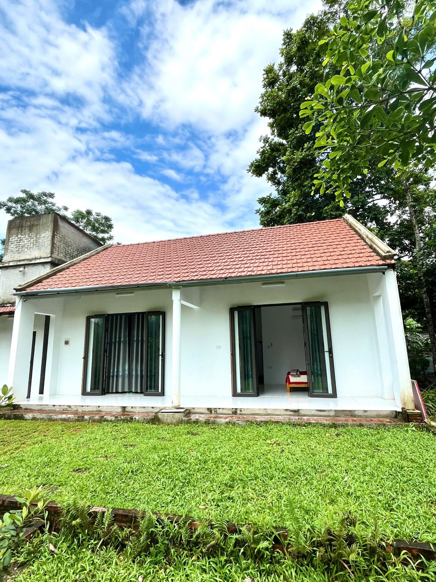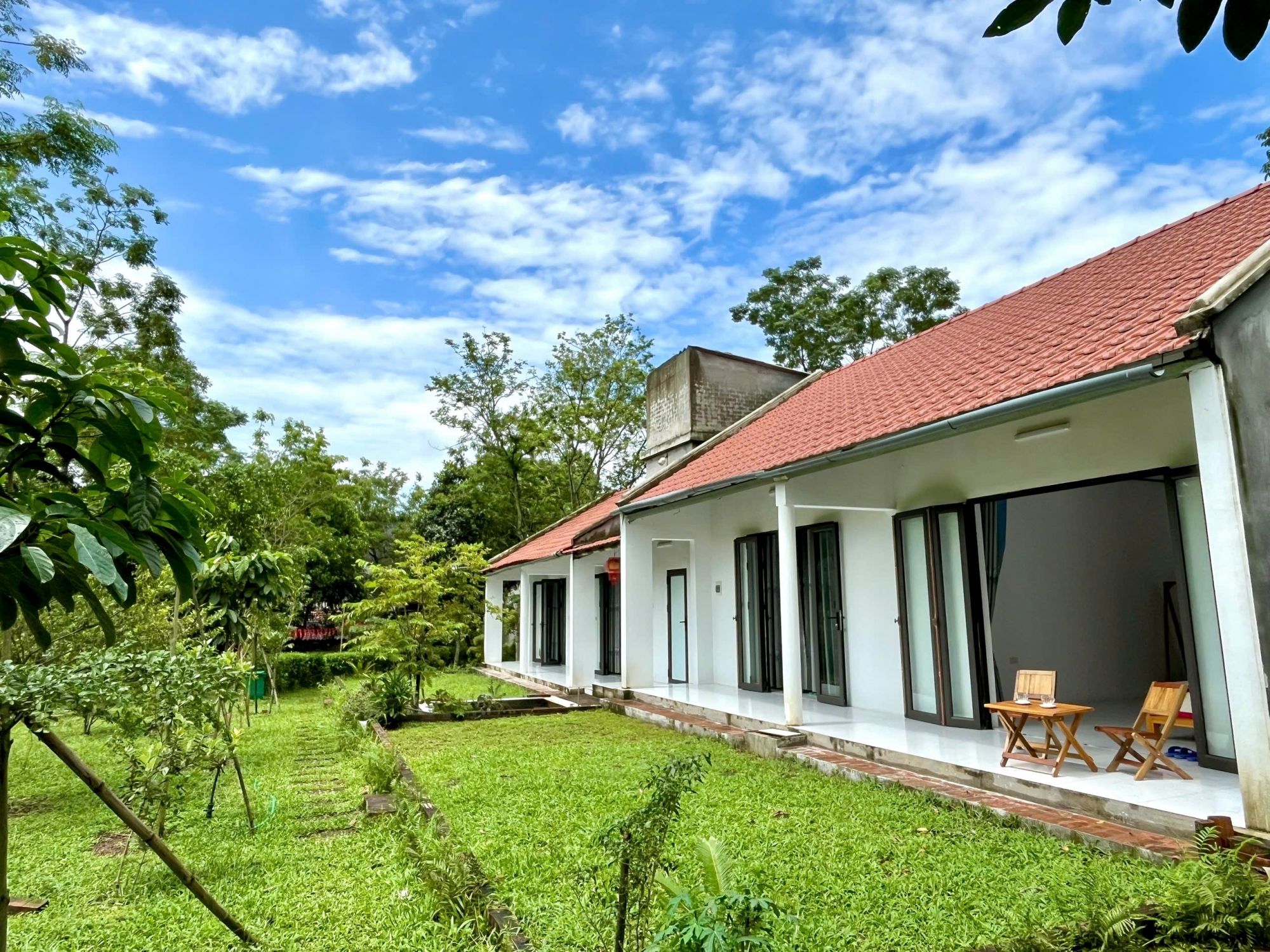 Điểm nổi bật của The Garden Homestay nằm ở cách không gian được đặt giữa thiên nhiên một cách hài hòa. Những lối đi xanh mướt, khoảng vườn thoáng đãng và các căn phòng tách biệt tạo nên cảm giác riêng tư nhưng không hề khép kín. Cảnh quan xung quanh luôn hiện diện trong tầm mắt, từ sắc xanh của cây lá đến bầu trời rộng mở phía trên.